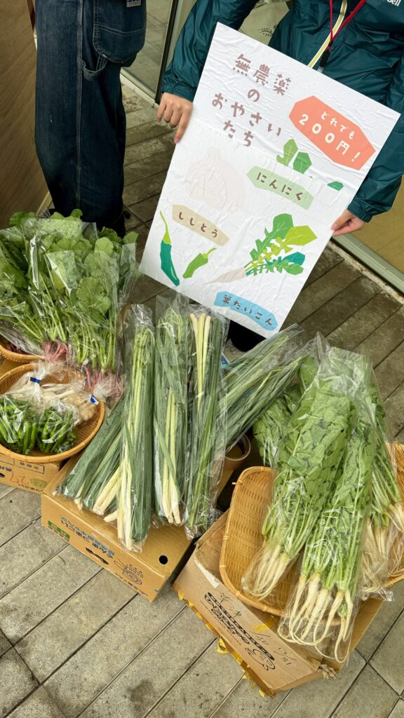 柳澤研究室は、横須賀市のながしま農園さんと連携して、レモングラスや葉大根が販売され、粕谷研究室は、横須賀市の鈴也ファームさんと協力し、さつまいもやフルーツかぶが販売されました。