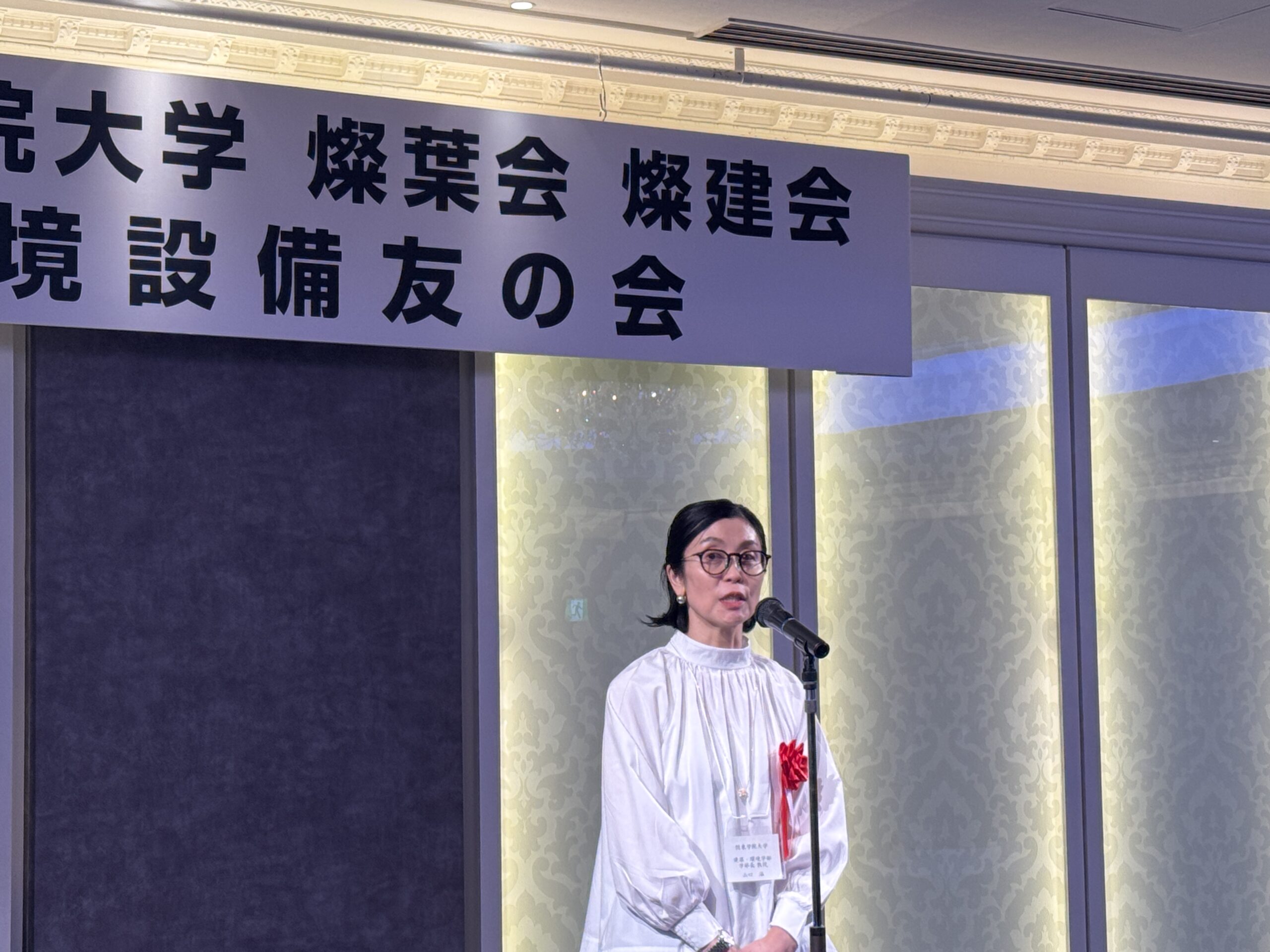第二部は、建設関連企業の参加者と大学関係者、学生の懇親会が盛大に開催されました。規矩大義理事長、小山嚴也学長、燦葉会の江波眞人会長の来賓挨拶から始まり、山口温学部長、粕谷淳司学科長から建築・環境学部の今後の展望と御礼の挨拶がありました。