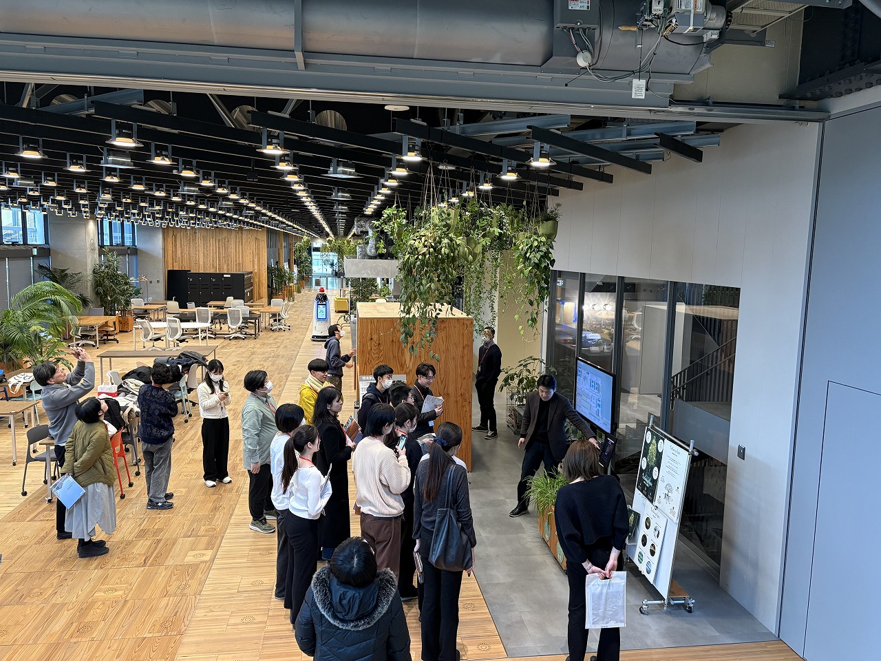 見学に先立ち、清水建設のご担当者より、本施設の建設に至る背景や設計思想、建物各所に盛り込まれた技術的工夫について、丁寧なご説明をいただきました。将来の社会的ニーズを見据えた新技術の考え方や、その実装に至るプロセスを直接伺うことができ、学生にとっては将来の進路やキャリアを考える上でも大変貴重な機会となりました。また、実際に建物に用いられている建築技術を見学することで、研究活動につながる多くの示唆を得ることができたと感じています。