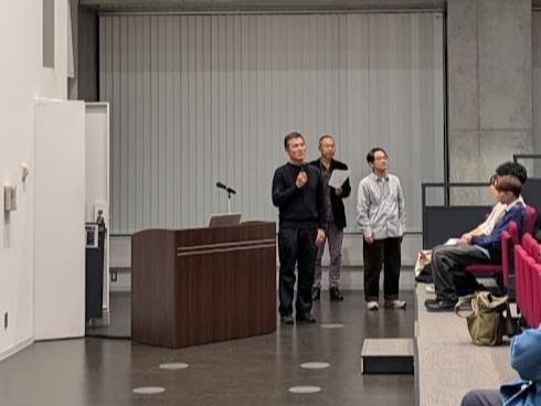 報告会は黒田先生の司会のもと進行し、冒頭に粕谷学科長より「数十年に一度というこの貴重な万博を、学生の皆さんと共に体験できたことは非常に有意義でした。今回の経験を単なる思い出に留めず、これからの設計や研究の糧にしてほしい」との開会挨拶がありました。