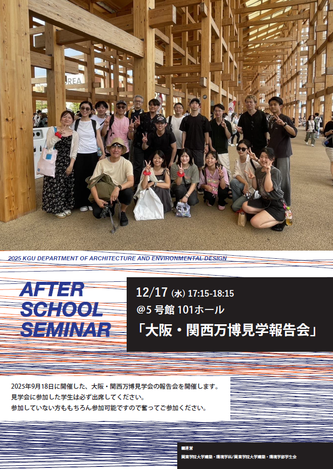 2025年12月17日(水)、建築・環境学部において、今夏に実施された「大阪・関西万博見学会」の報告会が、アフタースクールゼミとして開催されました。