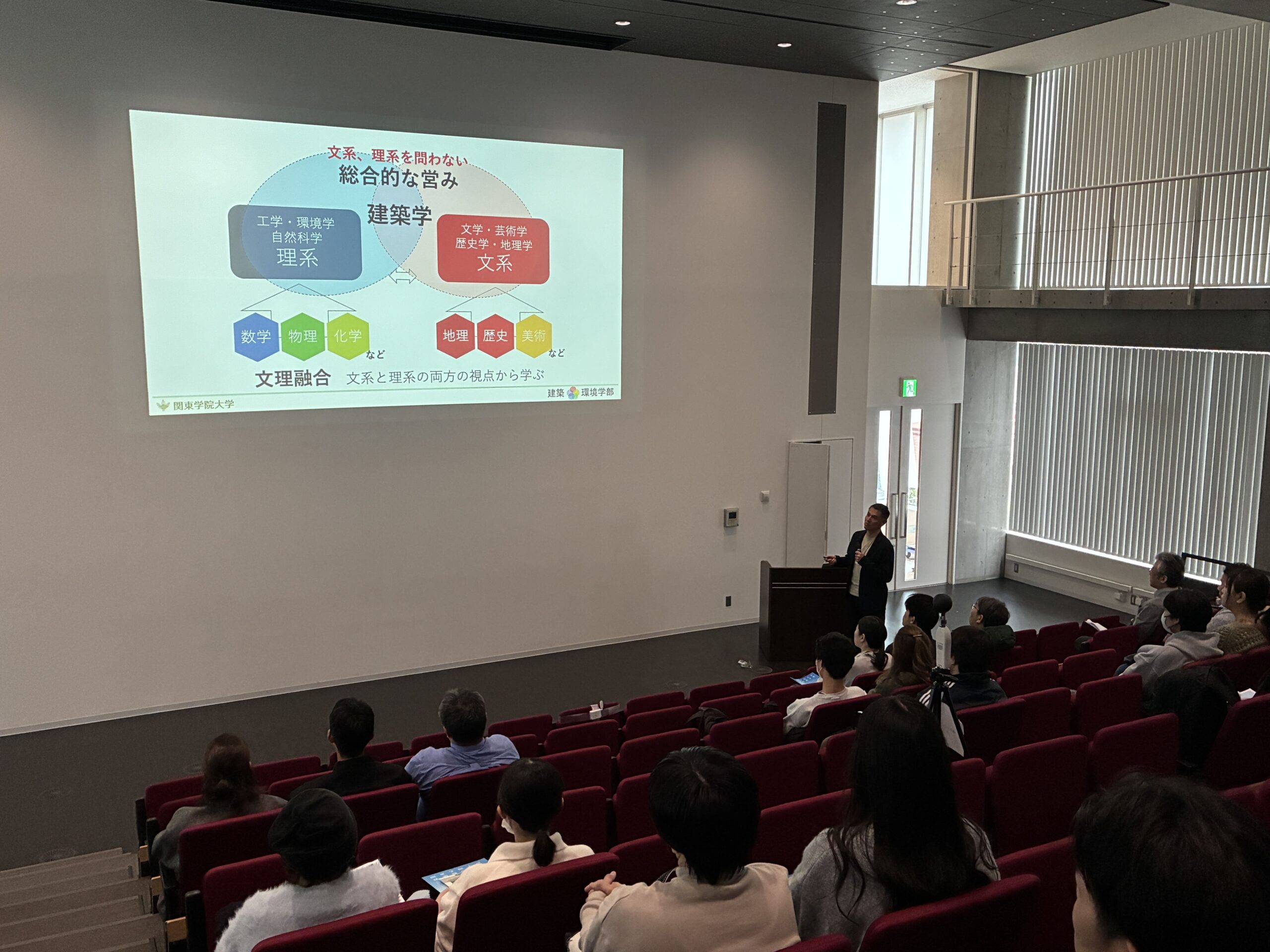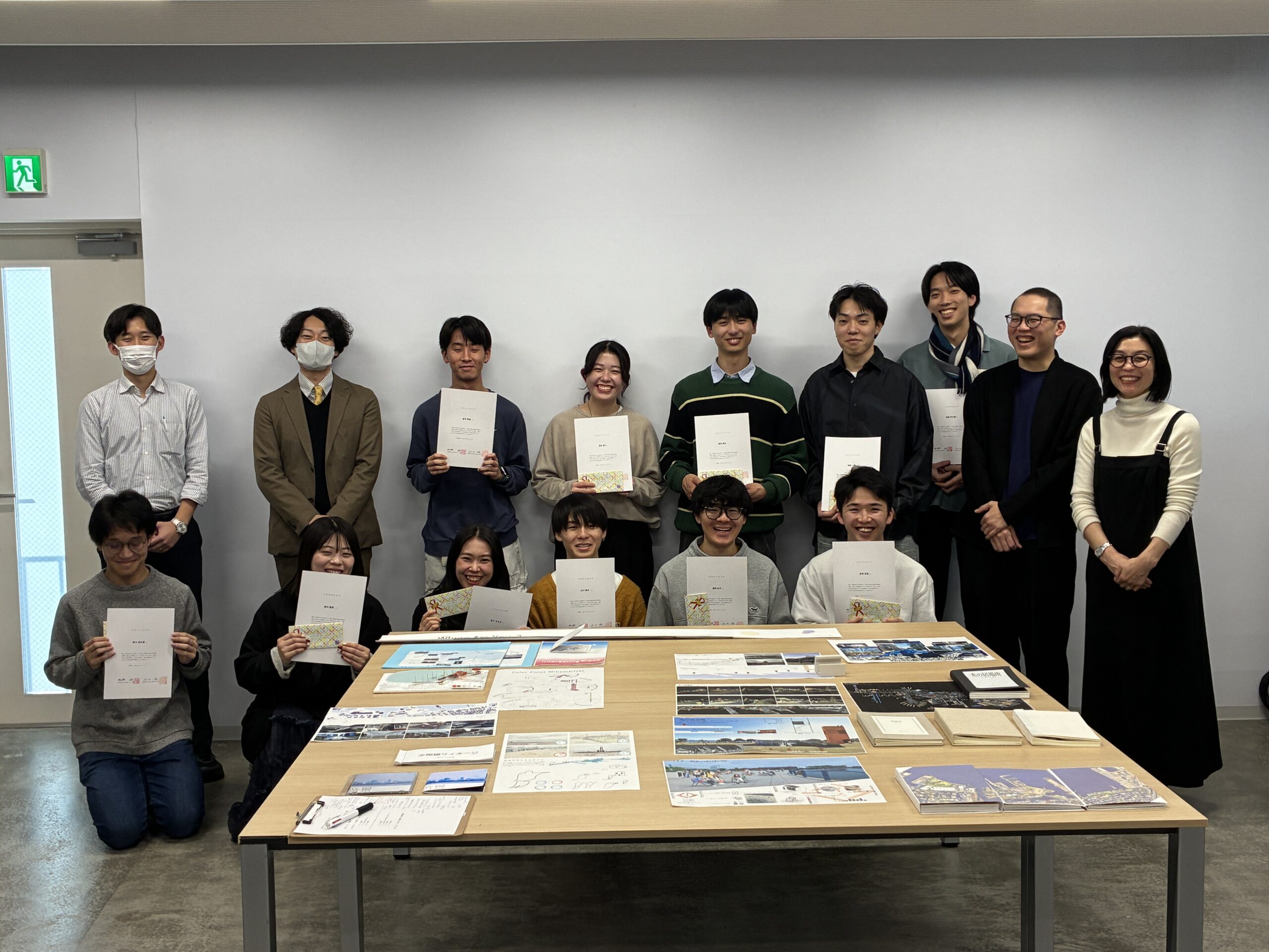 このイベントは,教員と学生が共に関東学院大学の建築・環境教育の全体像を見つめ直すと同時に,上級生,下級生の作品発表を通して創造的な刺激を受け合う場として位置づけられています。1年生から4年生の設計製図及びスタジオ及び大学院のスタジオまで,全学年の作品発表が行われました。本年度は会場に非常勤講師8名、専任教員6名、助手3名と来場者30名ほどを迎え入れ、対面形式で開催しました。