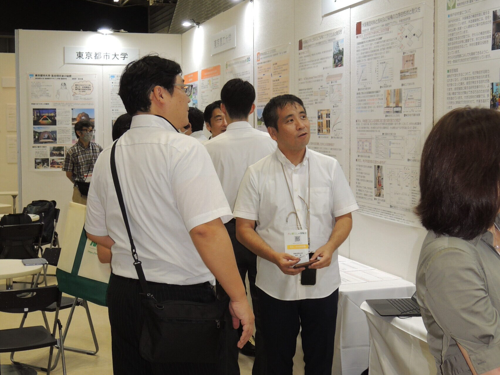 展示会には、建築・環境学部の神戸研究室と高島研究室が出展いたしました。たいへんに多くの方が参加され、様々なブースを訪れ、各会社とのコネクションを作っていました。その中で、本学のブースにも多くの方が訪れてくださり、学部での研究・教育活動のお話を聞いてくださいました。