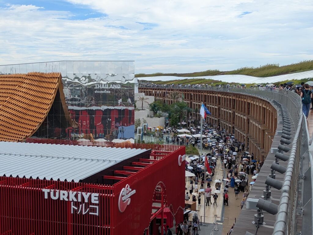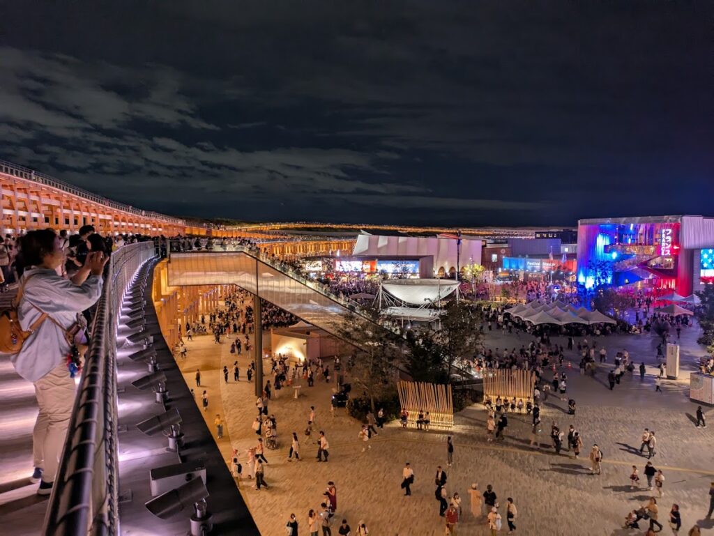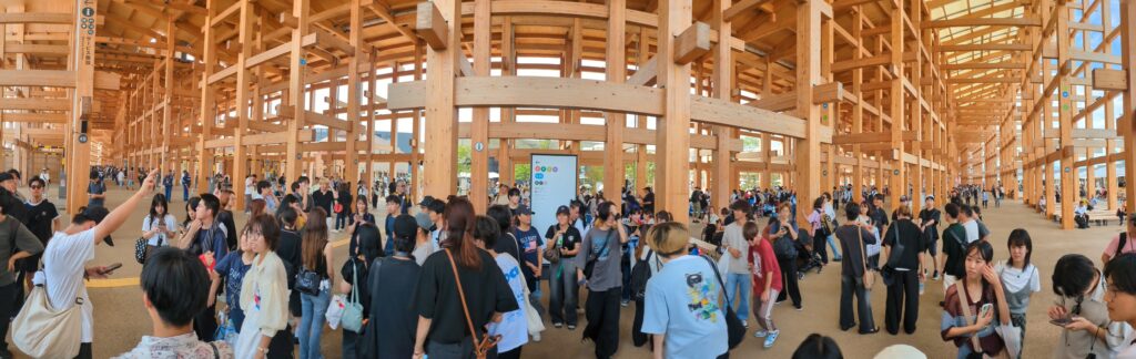 今回の見学会には、学科に在籍する学部生128名と大学院生17名の計145名が参加しました。また、学生会からの引率学生7名と、教員・助手9名が同行し、大規模な研修となりました。当日は、万博のシンボルである大屋根リングで集合し、その後は各自で自由に見学を行いました。