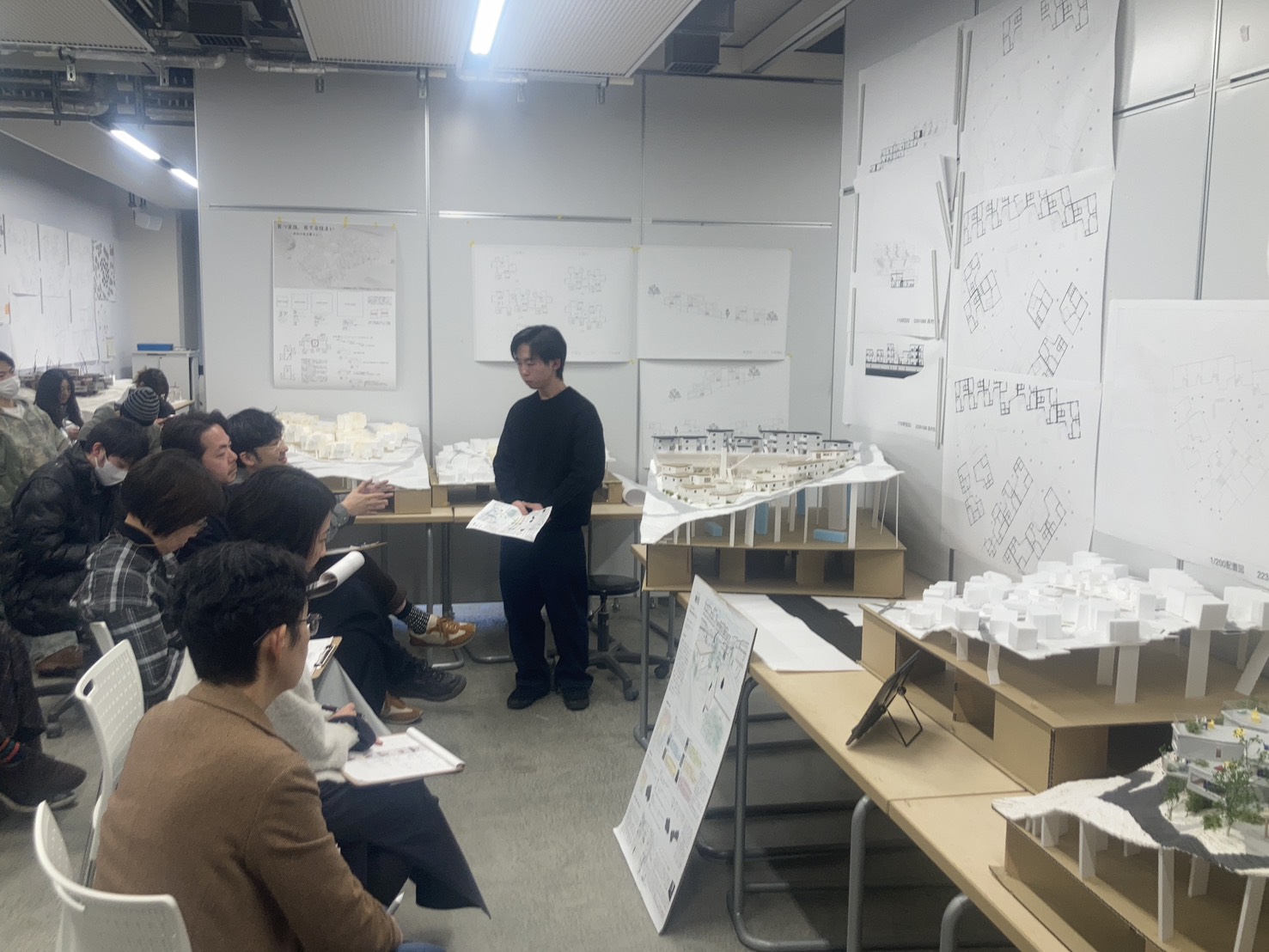 Studio Blog 授業ブログ 絞り込み解除 コース・共通科目を絞り込み すべて 大学院工学研究科 まちづくりデザインコース すまいデザインコース 建築デザインコース 環境共生デザインコース 建築エンジニアリングコース ワークショップ 建築設計製図 その他 ワークショップ・デザインスタジオを絞り込み すべて コンピュテーショナルデザイン1(1年) 大学院建築デザインスタジオ2 大学院建築デザインスタジオ1 ドローイングワークショップ(1年) モデリングワークショップ (1年) ビルディングワークショップ(2年) ランドスケープ・デザインワークショップ(2年) 建築設計製図I (1年) 建築設計製図II (1年) 建築設計製図III (2年) 建築設計製図IV (2年) 建築デザインスタジオ1 (3年) 建築デザインスタジオ2 (3年) まちづくりデザインスタジオ1 (3年) まちづくりデザインスタジオ2 (3年) すまいデザインスタジオ1 (3年) すまいデザインスタジオ2 (3年) パッシブデザインスタジオ (3年) 建築環境デザインスタジオ (3年) 総合デザインスタジオ (4年) 建築環境・設備実験 (3年) 建築構造実験 (3年) 建築構造設計製図 (3年) 建築材料実験 (2年) 建築構法設計製図 (3年) 第14回 鉄骨造 まとめ 建築構造設計製図 (3年) 2026/01/26 第14回 Booklet・Gift Box モデリングワークショップ (1年) 2026/01/24 第14回 アルミフレームの振動実験のデータ整理指導 建築構造実験 (3年) 2026/01/23 第14回 第2課題 講評会 建築設計製図IV (2年) 2026/01/23 第14回 第2課題「野島公園のチャペル(礼拝堂)」提出・全体講評<建築設計製図Ⅱ> 建築設計製図II (1年) 2026/01/22 第14回 最終講評 建築デザインスタジオ2 (3年) 2026/01/22 第14回 ゲスト講評会 すまいデザインスタジオ2 (3年) 2026/01/22 第14回 最終講評会 ランドスケープ・デザインワークショップ(2年) 2026/01/20 第14回 課題提出・講評会 まちづくりデザインスタジオ2 (3年) 2026/01/20 第14回 最終課題 から傘の家 3週目 コンピュテーショナルデザイン1(1年) 2026/01/20 第13回 鉄骨造 詳細図 その2 建築構造設計製図 (3年) 2026/01/19 第13回 エスキス5:計画総合 <建築設計製図Ⅱ> 建築設計製図II (1年) 2026/01/15 123進む 年度を選択 2025年度 2024年度 2023年度 2022年度