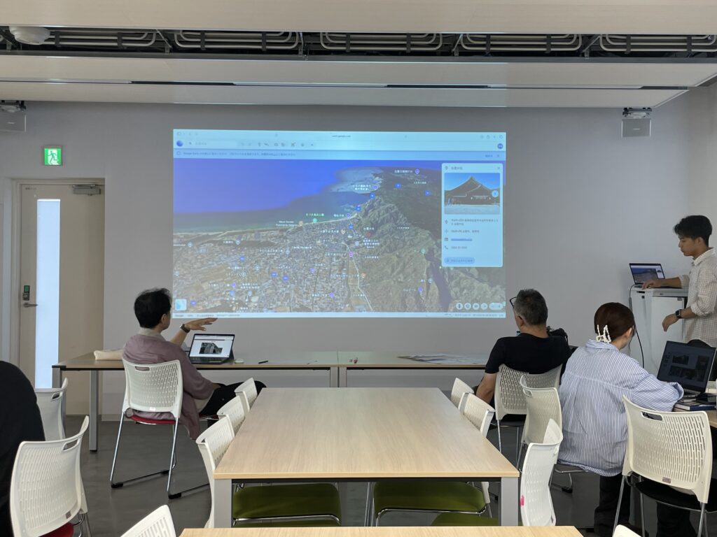発表の中では、図面や場所、建ち方について、グーグルマップ使いながら建築が建つ場所について確認したり先生方と言葉を交わしたりしながら行われました。