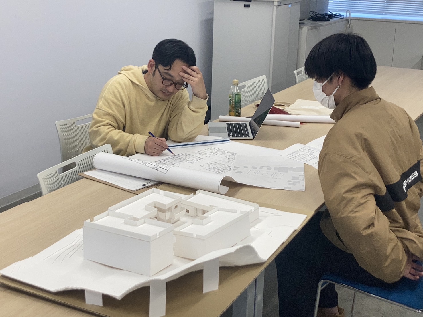 また、今回は年内最後のエスキスです。初回の授業で配布された課題要綱を再度確認し、設計を進めるうえで、分からないところや決めかねているところがないようにし、冬休みで完成へ持っていきます。