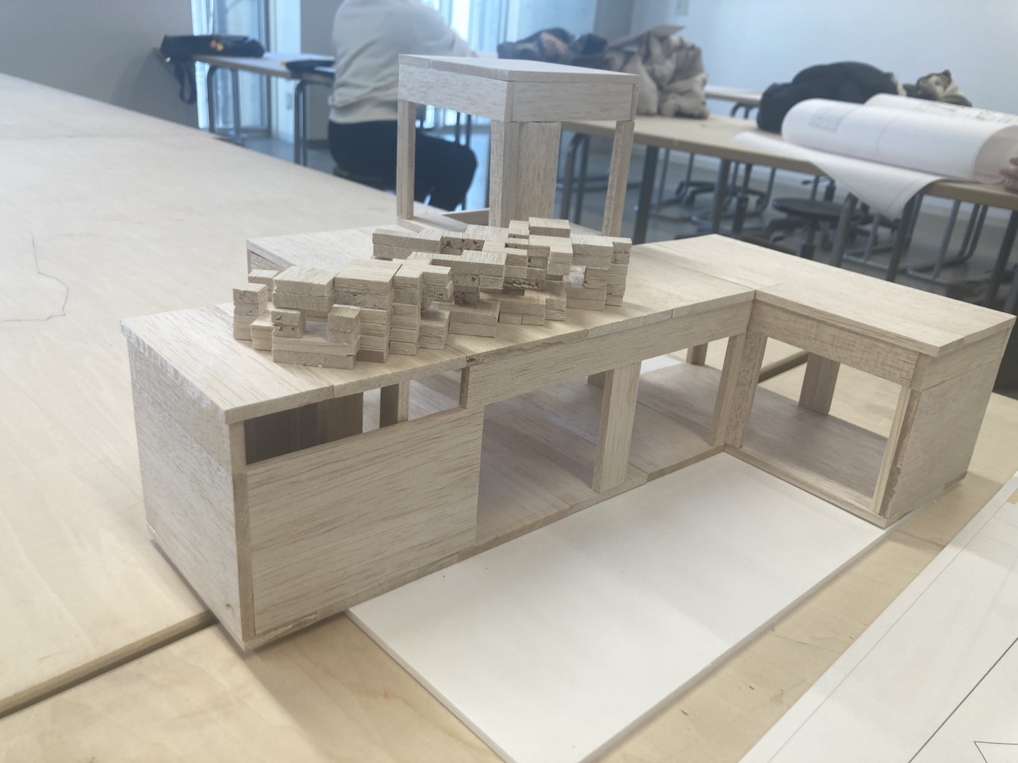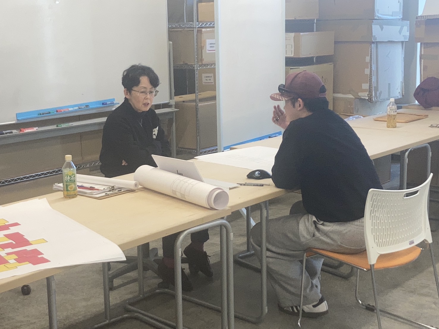 今回の授業では、来週の発表に向けて、プレゼンボードや模型の表現と提案において一体感がありストーリー性があるかをエスキスしていきます。