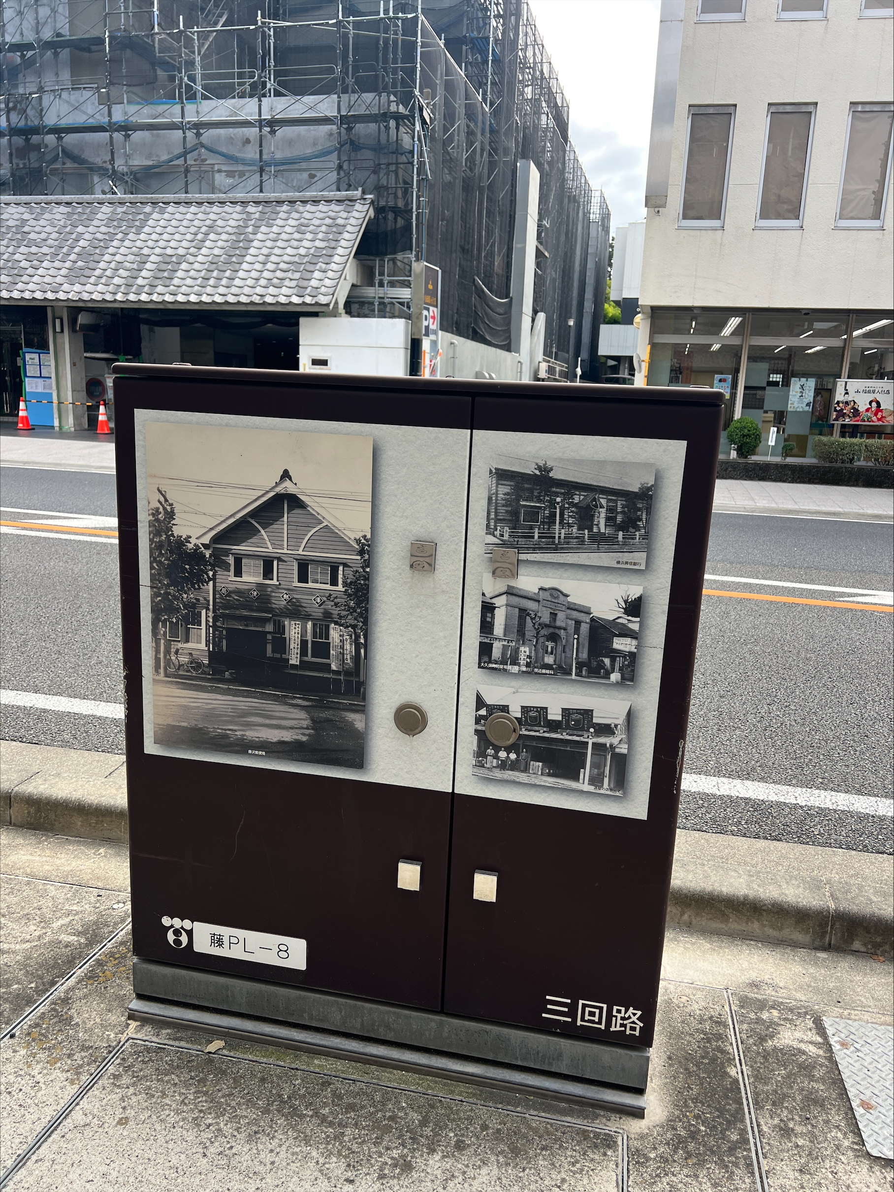 旧桔梗屋に向かう前に、旧東海道の宿場町「藤沢宿」について、現地レクチャーがありました。江戸の日本橋から数えて6番目の宿場です。黒田先生、兼弘先生、戸田先生からの解説を交えて、旧藤沢宿を端から端まで歩きました。街道の傍らには昔の写真が展示され、かつての街並みを偲ぶことが出来ました。