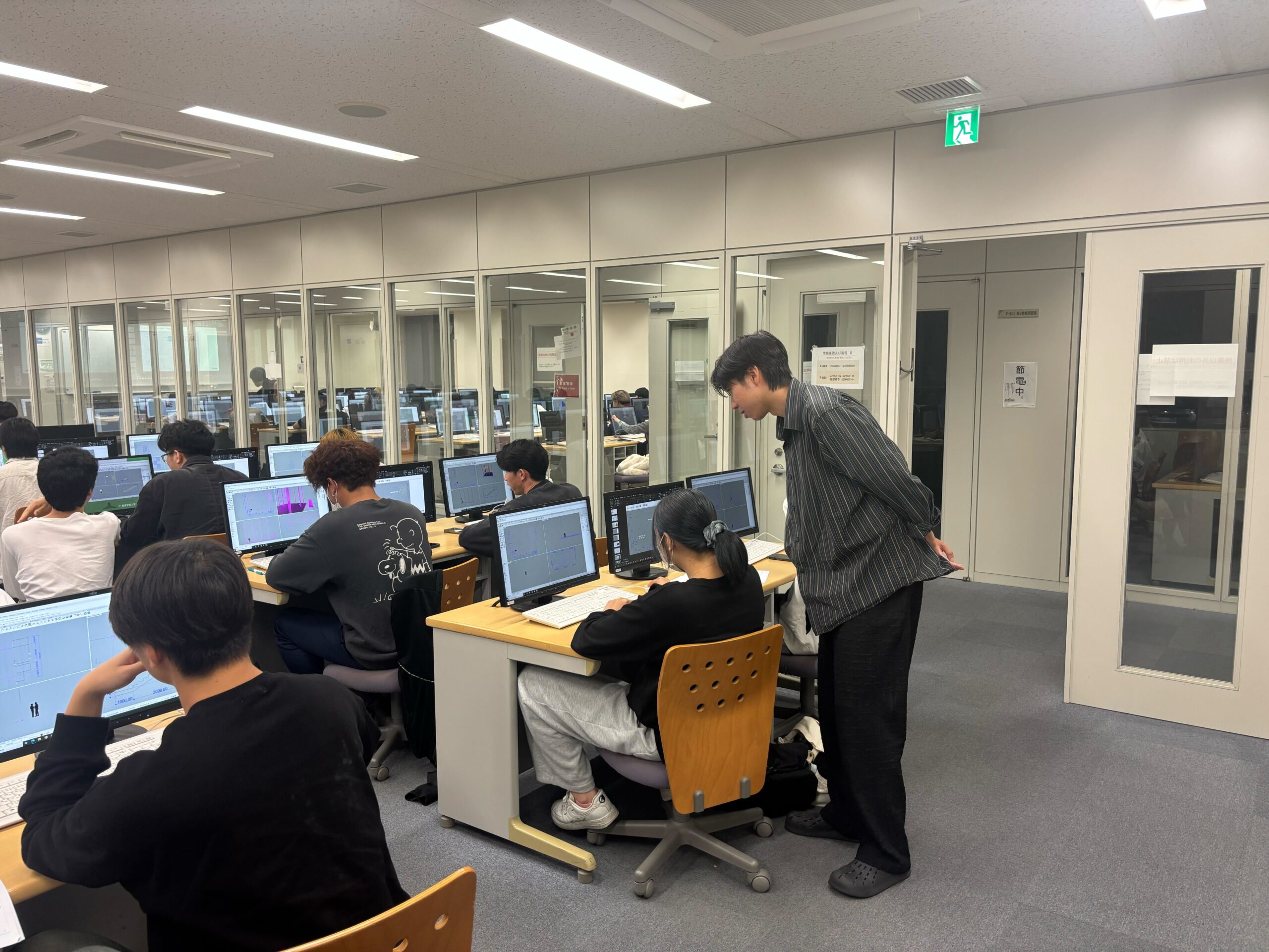 2025.10.14(火)第3回目となる今回の授業では、前回の授業でモデリングしたドミノシステムの作成方法の復習・モデリングに便利なコマンドの説明・2Dから3Dをモデリングする方法の説明がありました。