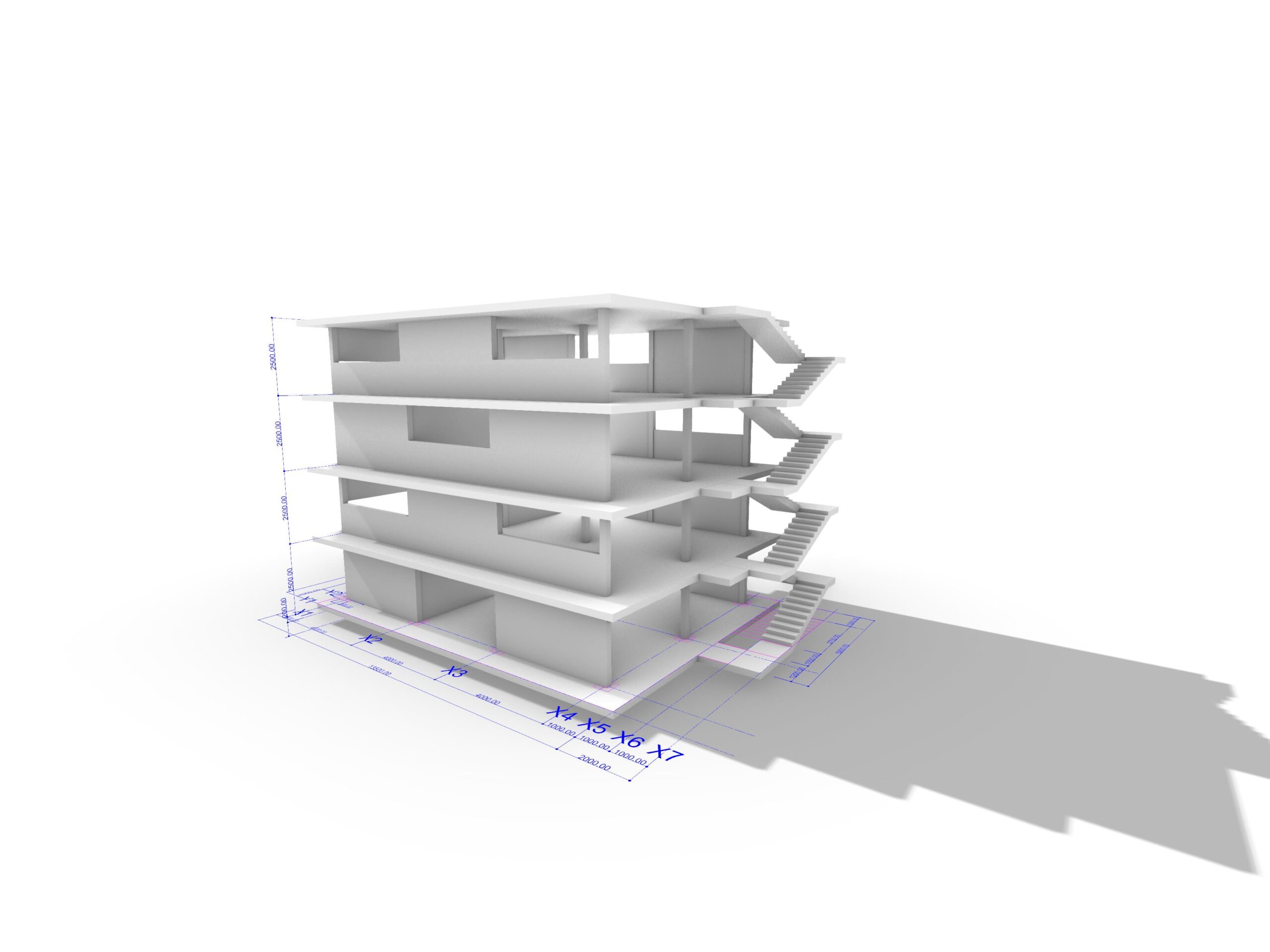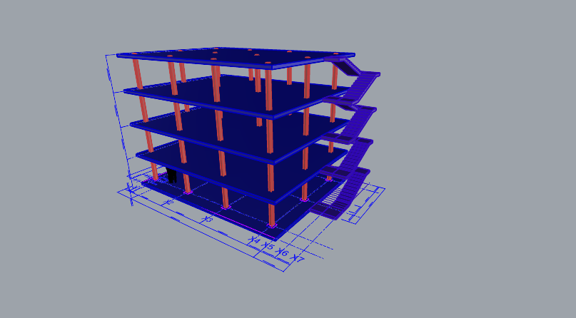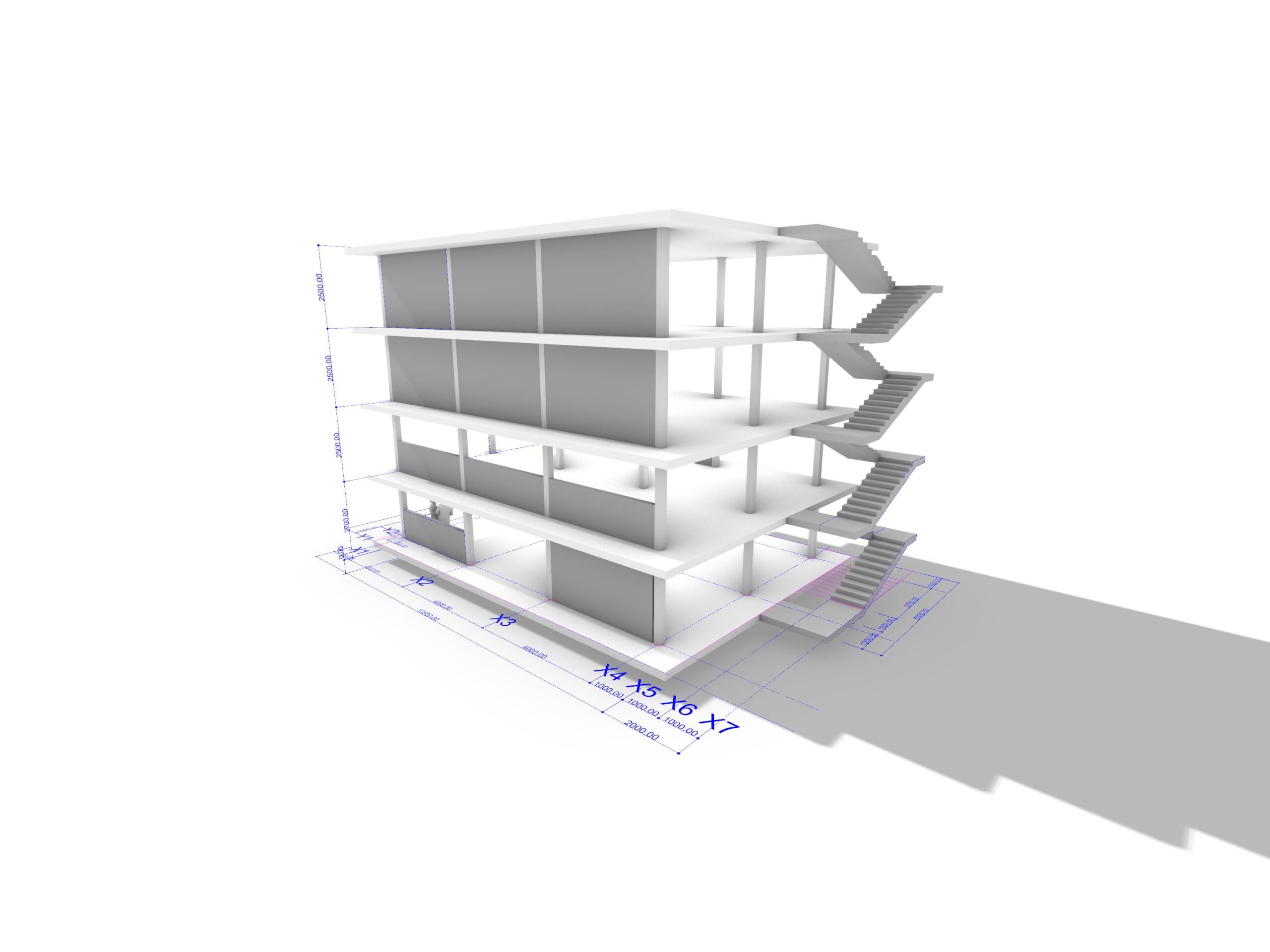 授業後半では、コルビュジエの「ドミノシステム」(4層版)を平面図の作成を行いモデリングしました。