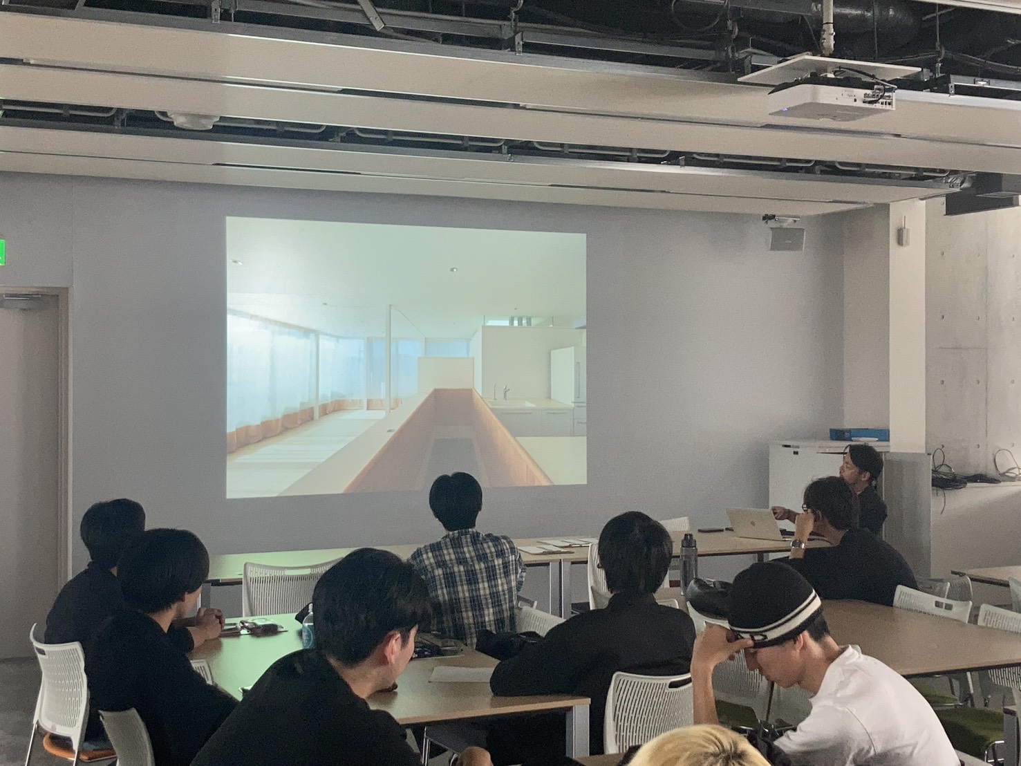 大学院卒業後のたくさんのご経験をお話いただきました。最初に設計されたご両親の住まいの話題、長い時間をかけて設計が進められた住まいについてのお話に皆、興味深く聞き入りました。設計された建物においても空間やプラン、素材など様々な考えが組み込まれており、どれも今回の課題である「住み継ぐ」についてのヒントになる事例だったと思います。学生たちは今後のエスキスでもぜひ、積極的に質問し住み継がれる住宅とは何かを考えてください。