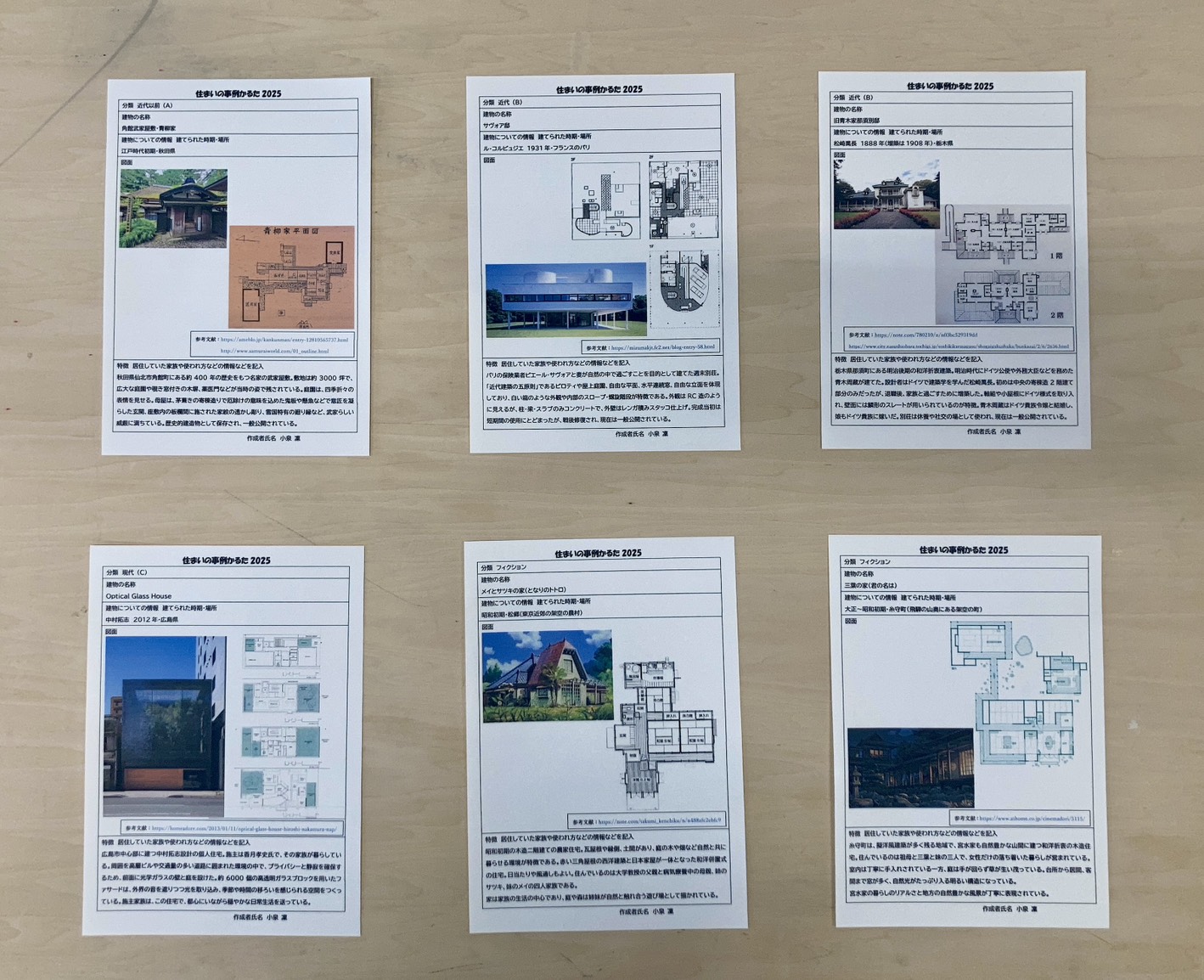 次に課題である「事例かるた」の講評会が行われました。住宅事例を調べていく上で学生はそれぞれ何かしらテーマを持ち、かるたの収集を行っていました。21人×6枚、計126枚の事例が集まり、住宅の住まい方や家族の在り方、住宅との関係などそれぞれの視点で発表していました。