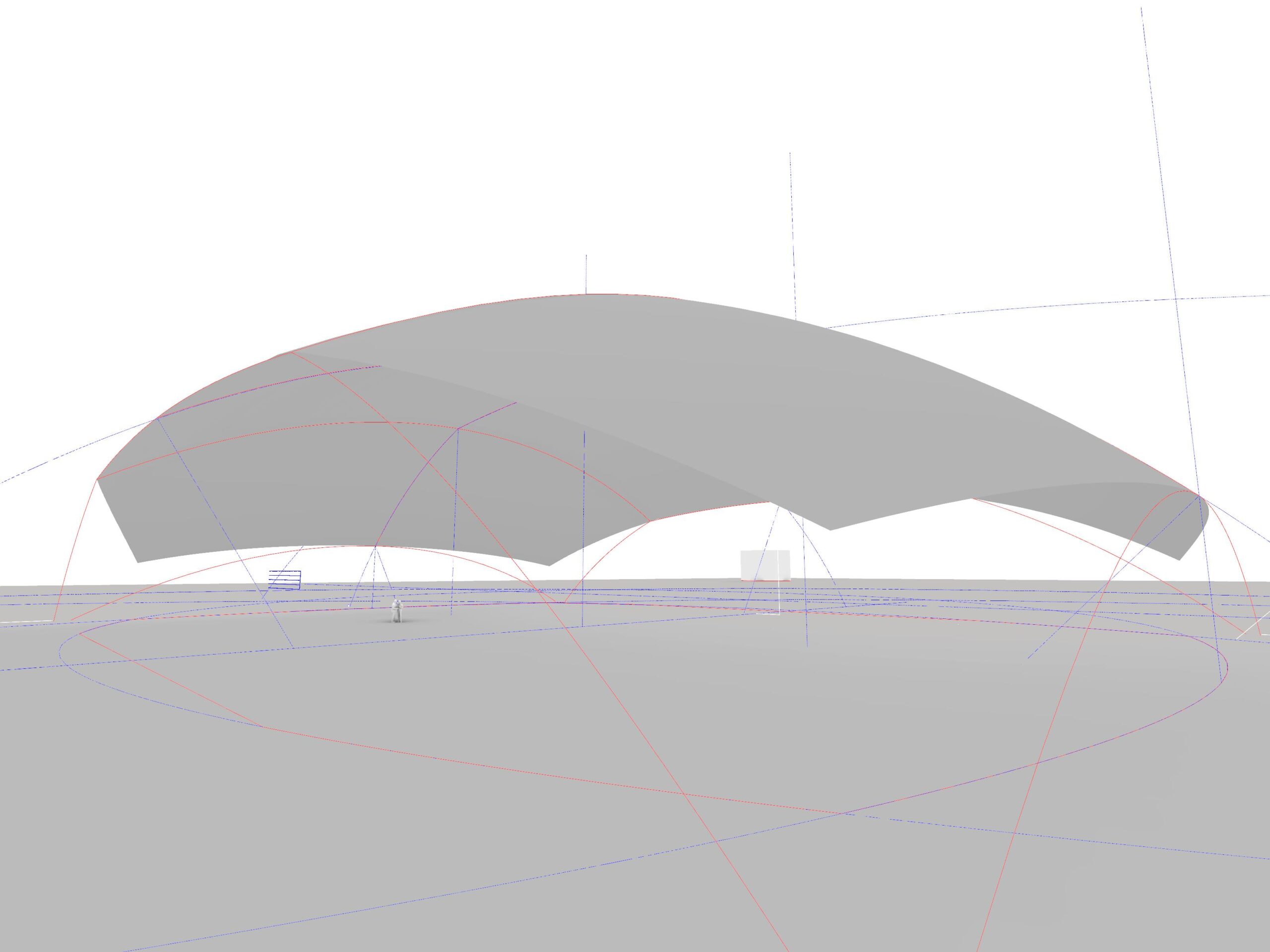 曲線と曲面のツールに関して学習後、授業後半では、小国ドーム、東京カテドラルなど、性質の異なる曲面屋根のモデリングをしました。