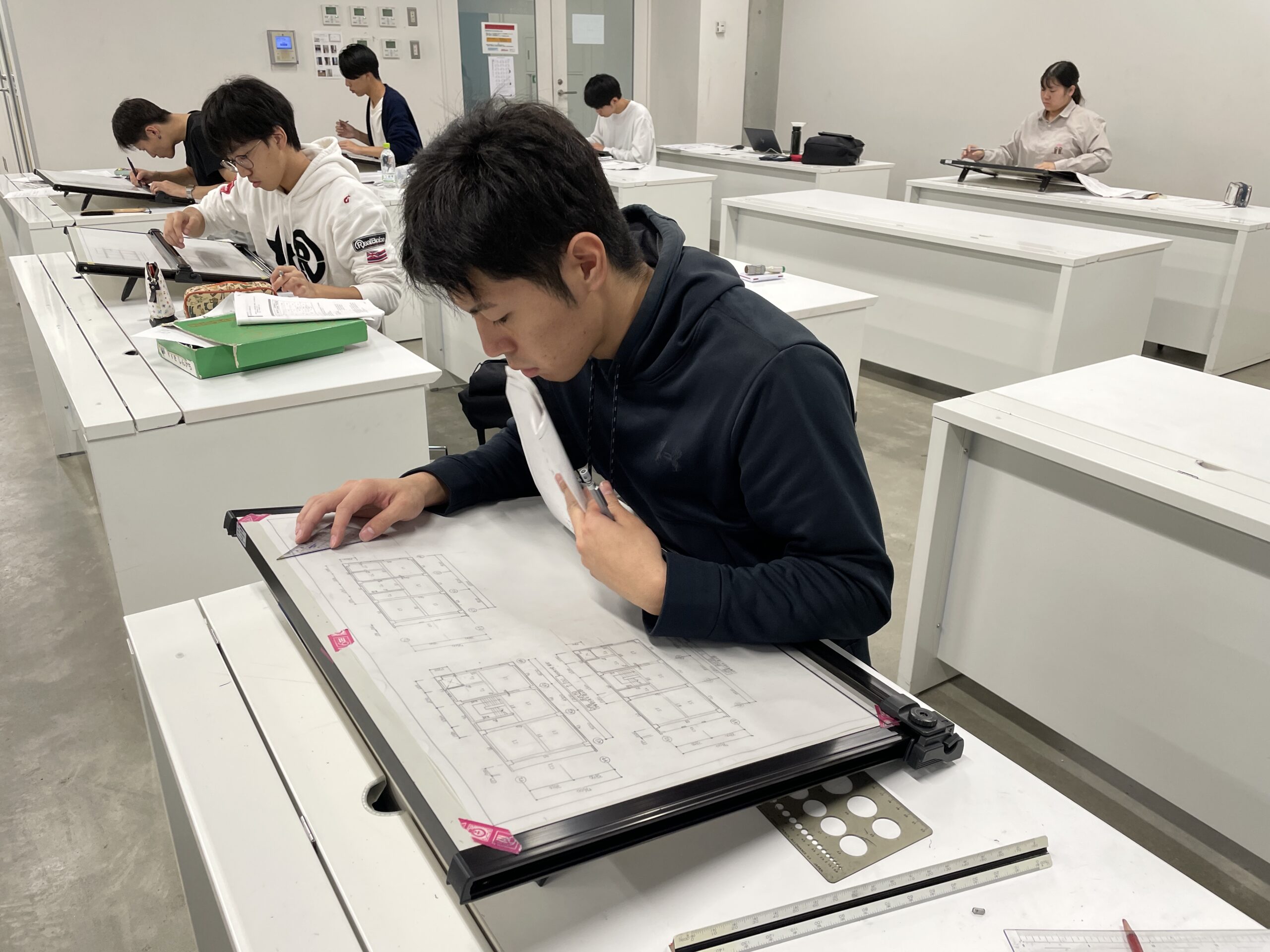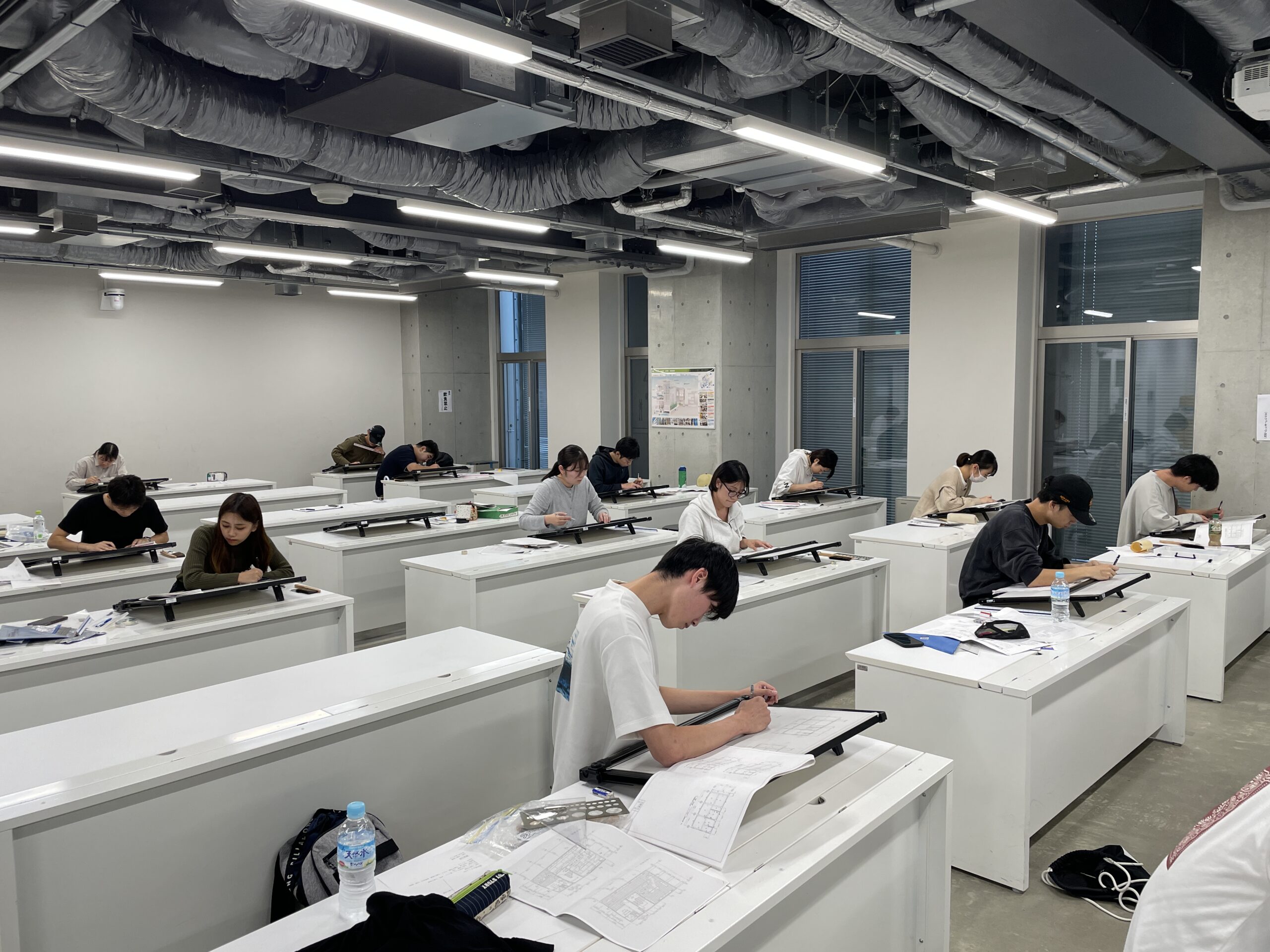 10月20日に行われた「建築構造設計製図」の第3回授業では、2階・3階・R階の床伏図に取り組みました。