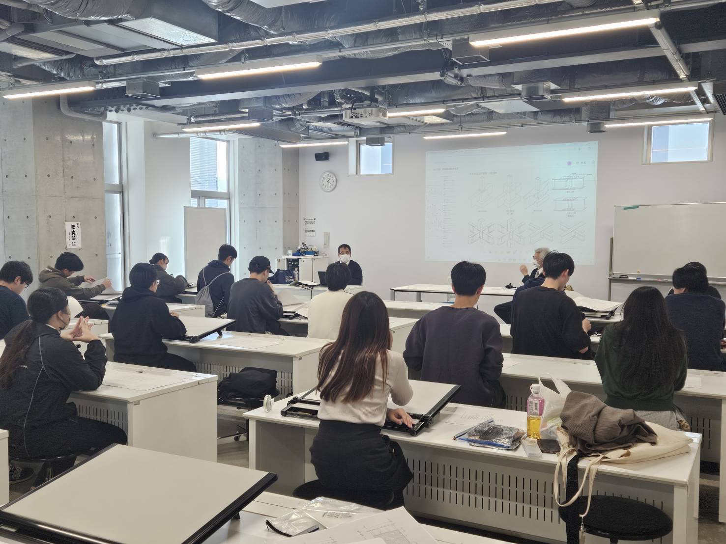 10月20日に行われた「建築構造設計製図」の第3回授業では、2階・3階・R階の床伏図に取り組みました。