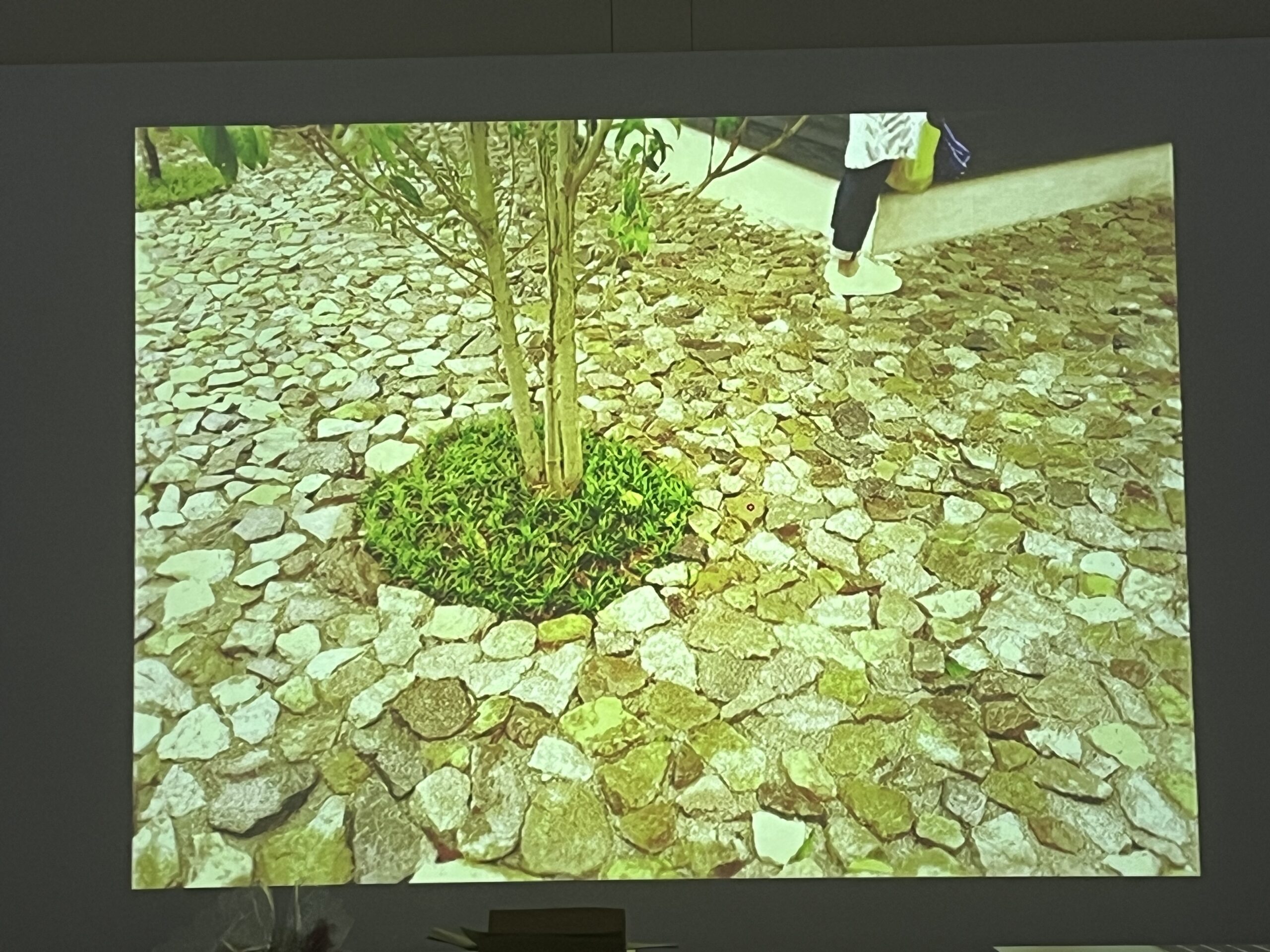 授業の冒頭、先生方から「地面」のデザインに関するレクチャーがありました。 野田先生からは、「そこでどんな過ごし方を想定するかで、地面の素材やデザインも変わる」「インターロッキングや石のパターンによって、人の気持ちや歩き方にも変化が生まれる」といった、デザインが心理に与える影響についてお話いただきました。 続いて中津先生からは、「その場所で人は歩くのか、座るのか、何人くらい集まるのか。具体的なアクティビティを深く考えることが重要だ」と、設計の核となる視点を教えていただきました。