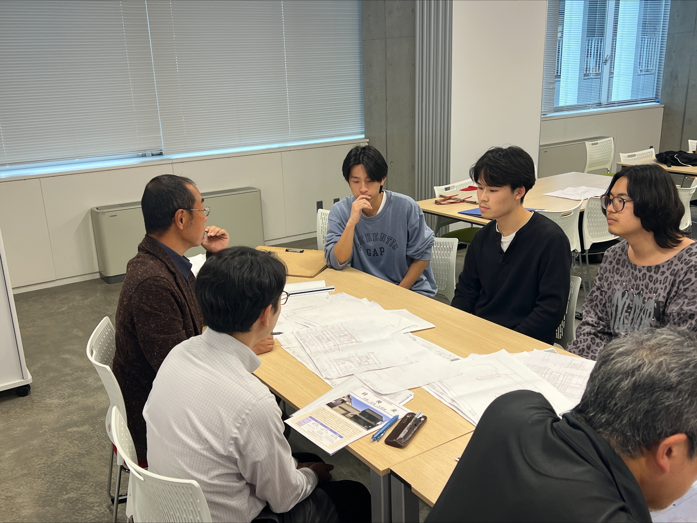 各班で指摘された部分は多々あると思いますが、全体を通して同じような点が注意されました。次回の授業までにより形になっているように、各班の図面など共有しながら作成していきましょう。