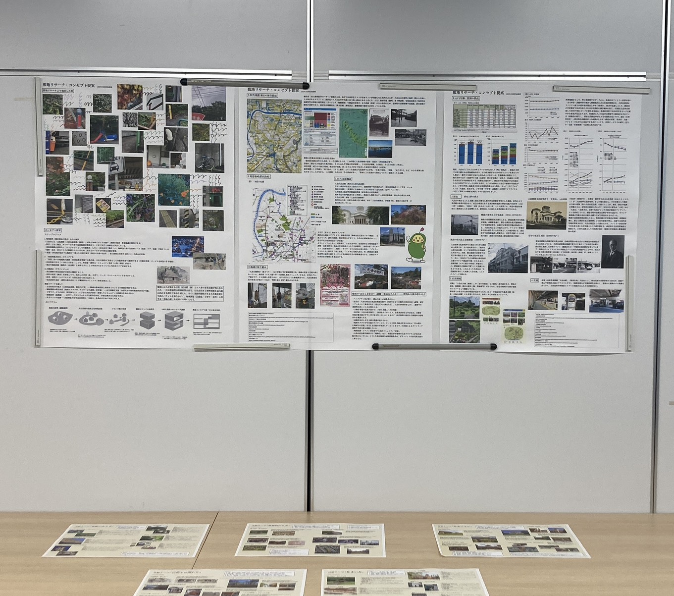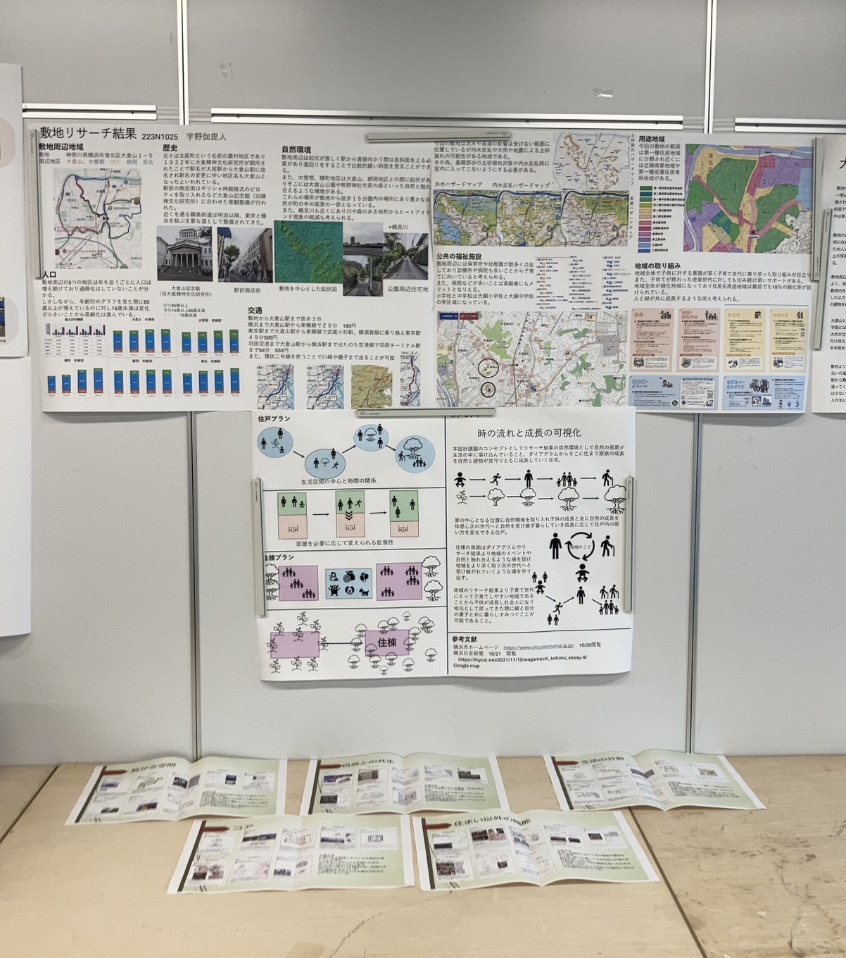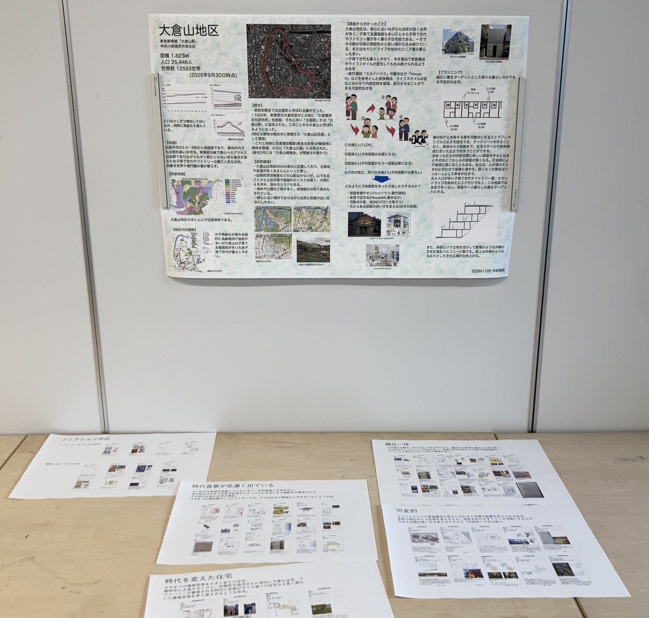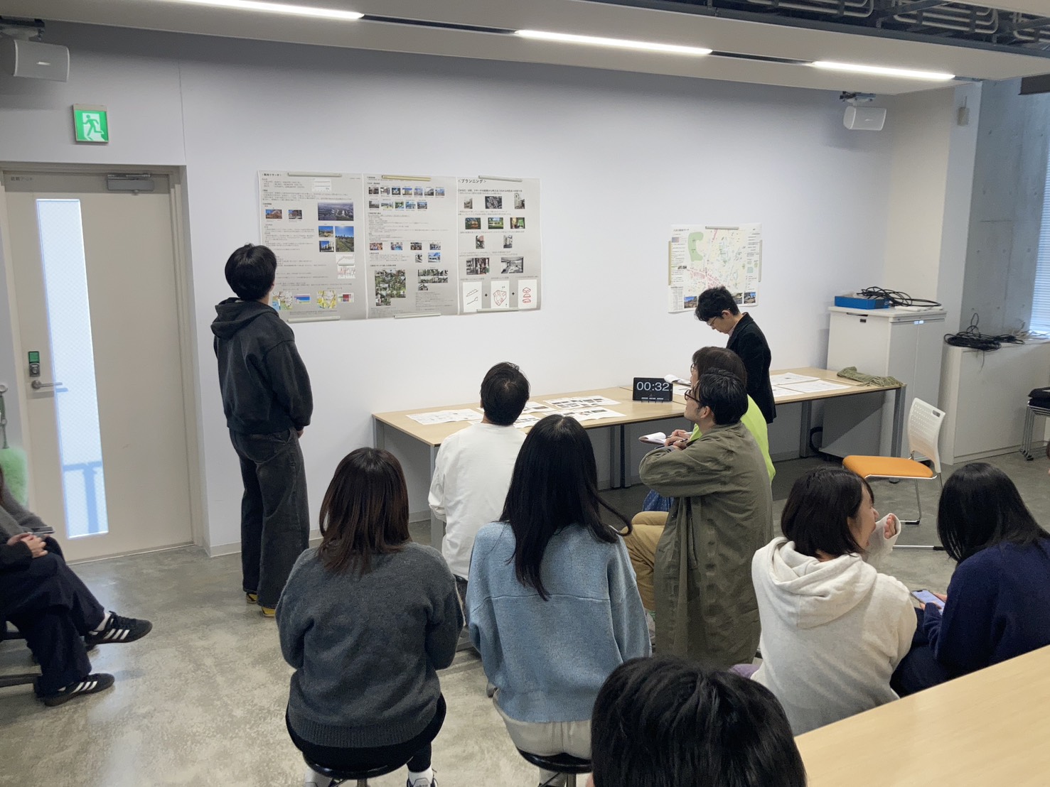学生たちはそれぞれカルタの分析や、敷地のリサーチの結果をパネル形式で発表を行いました。敷地を歩いて考えたことや、対象地域の人口、歴史などそれぞれリサーチした内容が発表されました。