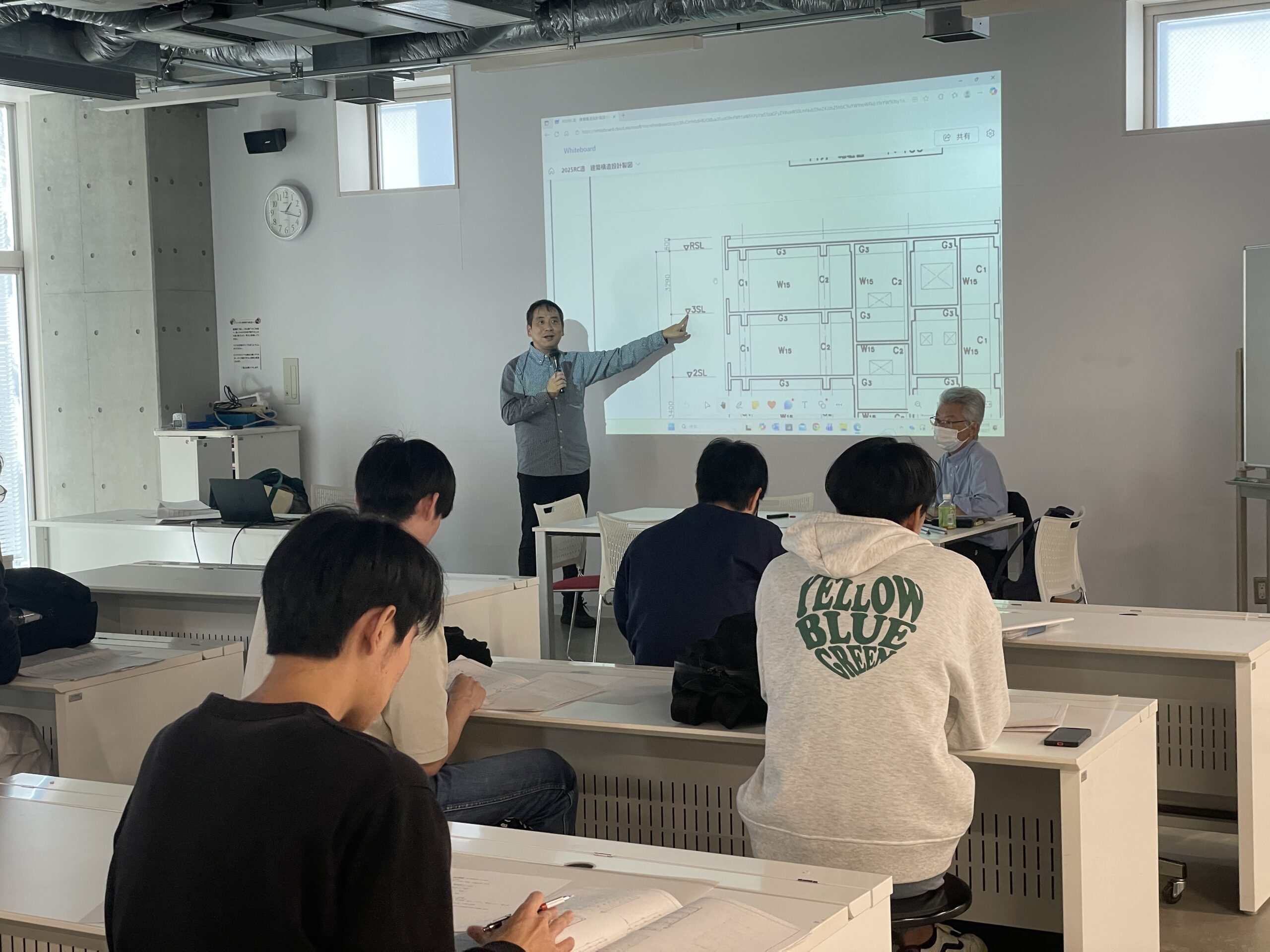 10月27日に行われた「建築構造設計製図」の第4回授業では、Y1・Y2・X1・X4列の軸組図の作図に取り組みました。