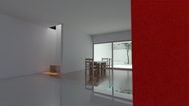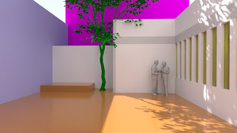 今回はルイス・バラガン設計のヒラルディ邸のモデリングを使って実習します。使用されている床やガラス、水面といった素材をデータに反映する方法、画角を設定してパースとして取り出す方法を学びました。