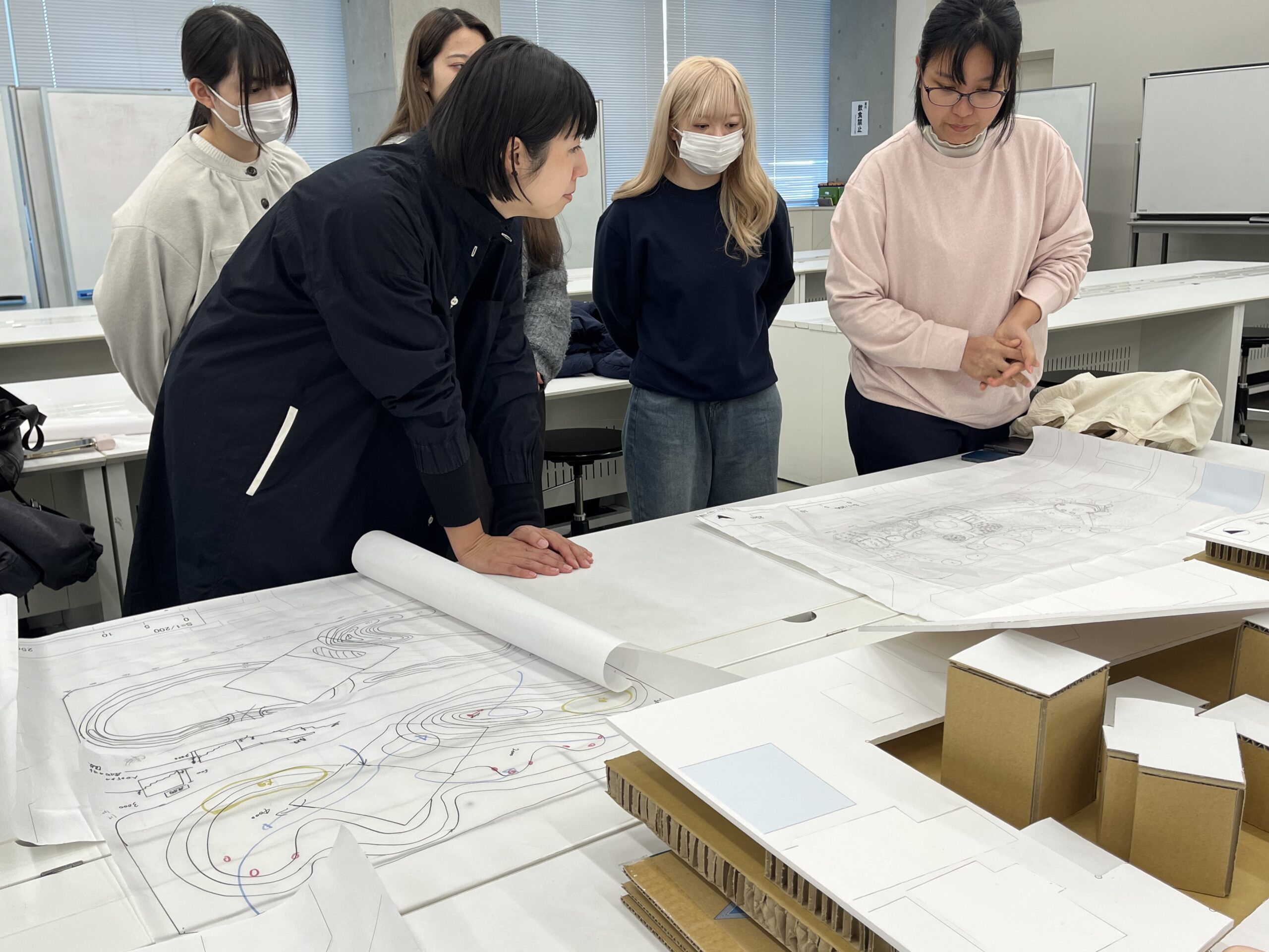 レクチャーの後、学生たちはこれまでの学びを総動員し、各自のデザインに足りない部分を補う最後の作業に取り組みました。よりリアルで魅力的な模型にするため、細かな工夫を凝らす姿が印象的でした。