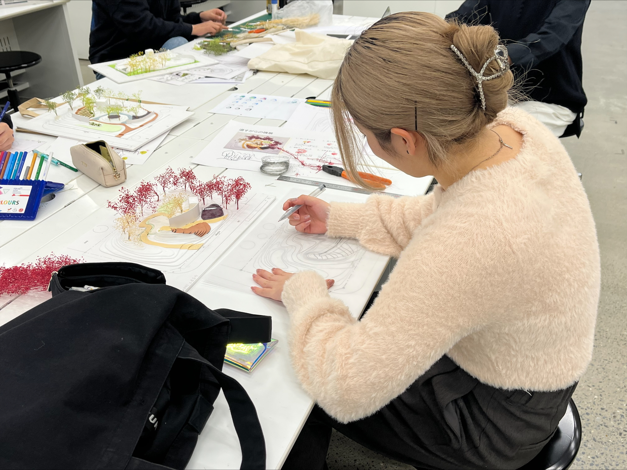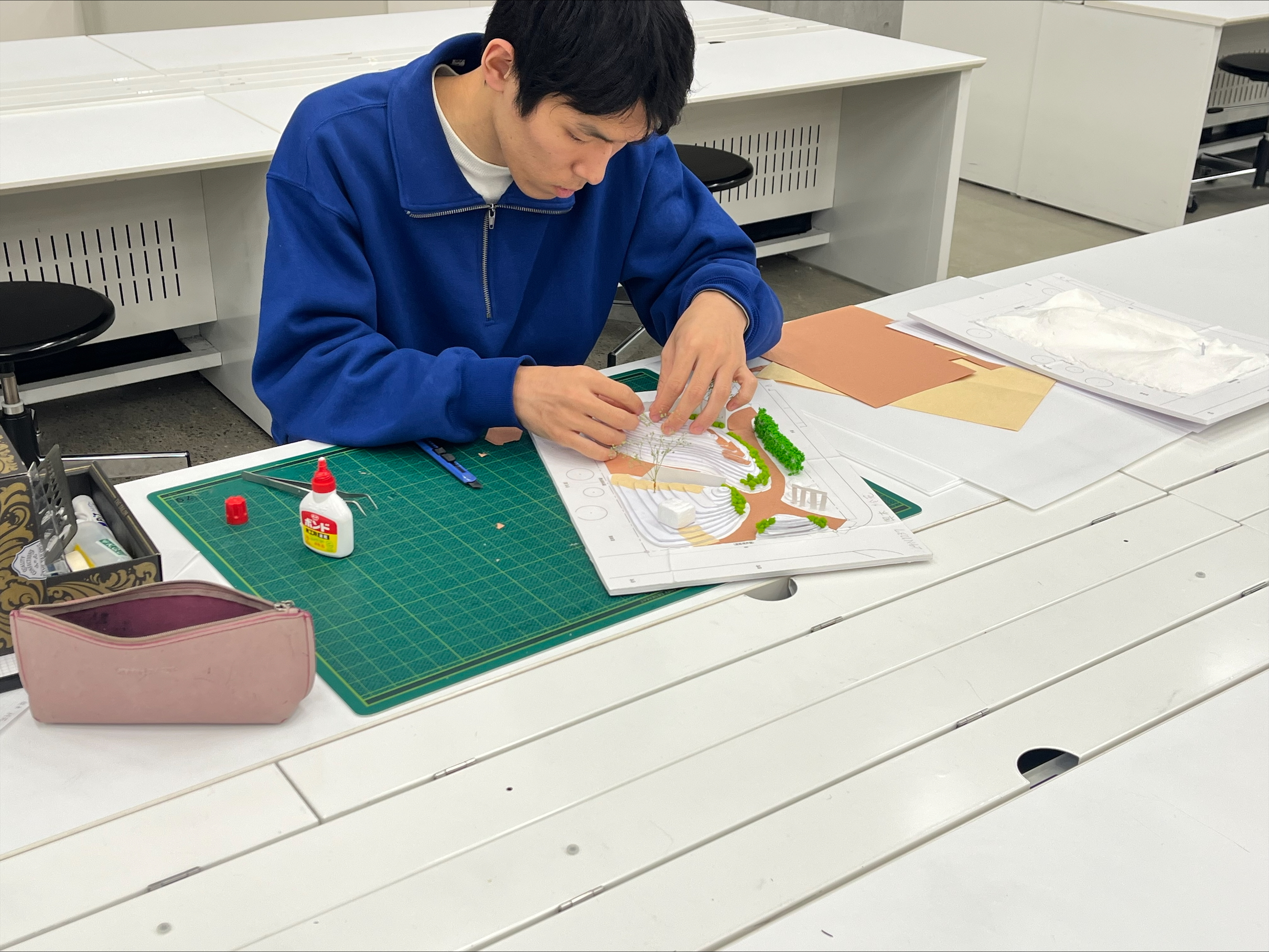 講評会の後は、講評で得たアドバイスをもとに、プレゼンシートや図面、模型の修正に取り掛かりました。
