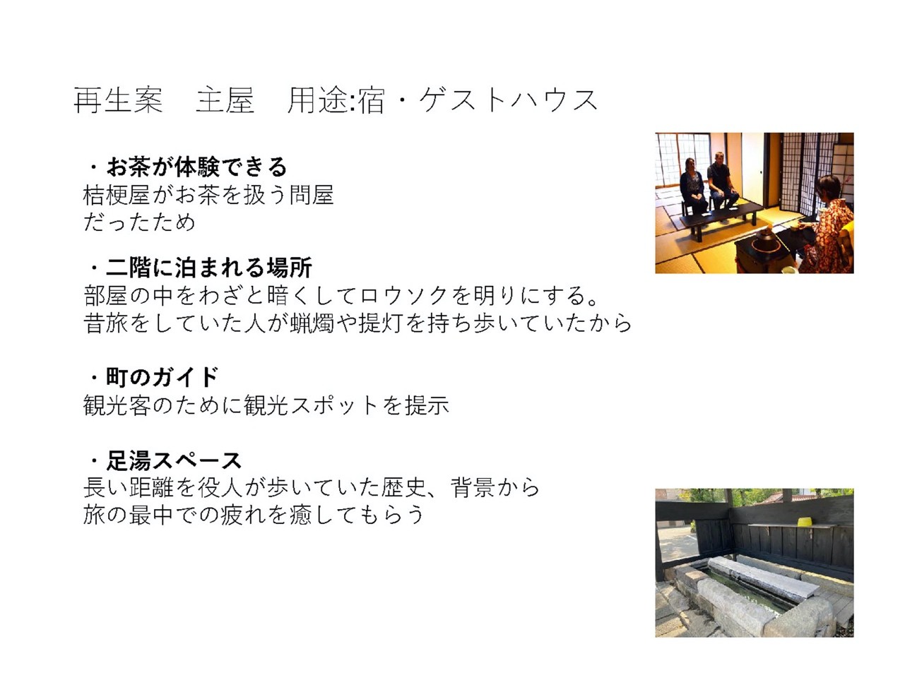 5班【桔梗屋を中心に過去、現在、旅人、地域住民をつなぐ架け橋となるカフェ】