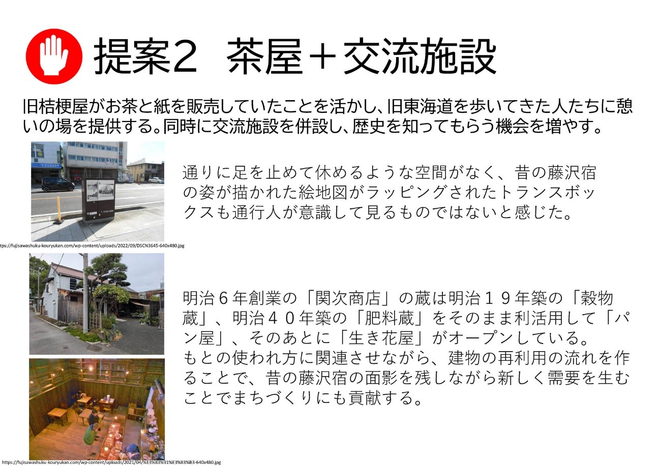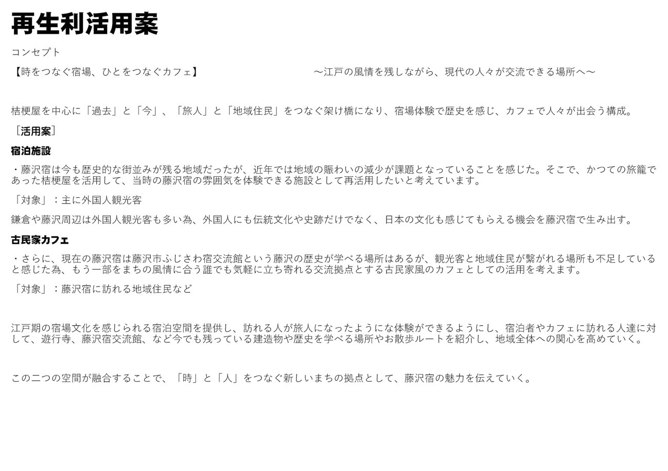 4班【①若い世代にも藤沢宿の歴史を身近で触れる、未来につながることを目的として学童を提案】