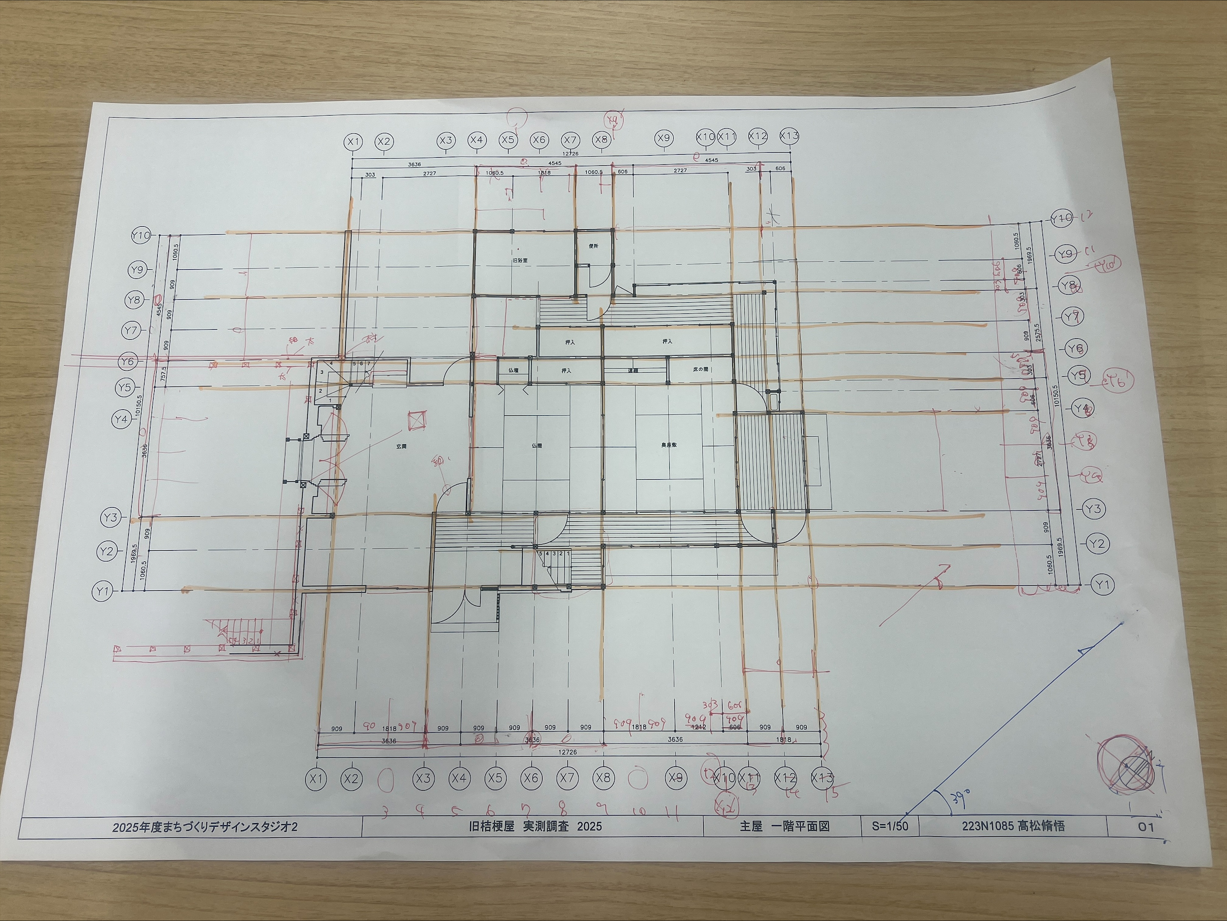 授業の後半では、実測図面のエスキスチェックを行いました。補足調査から間が空きましたが、各班共に図面が修正されてきた印象でした。