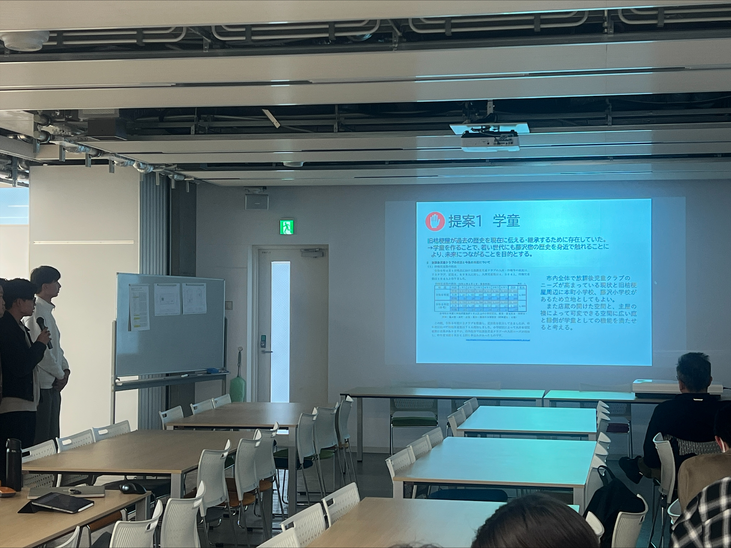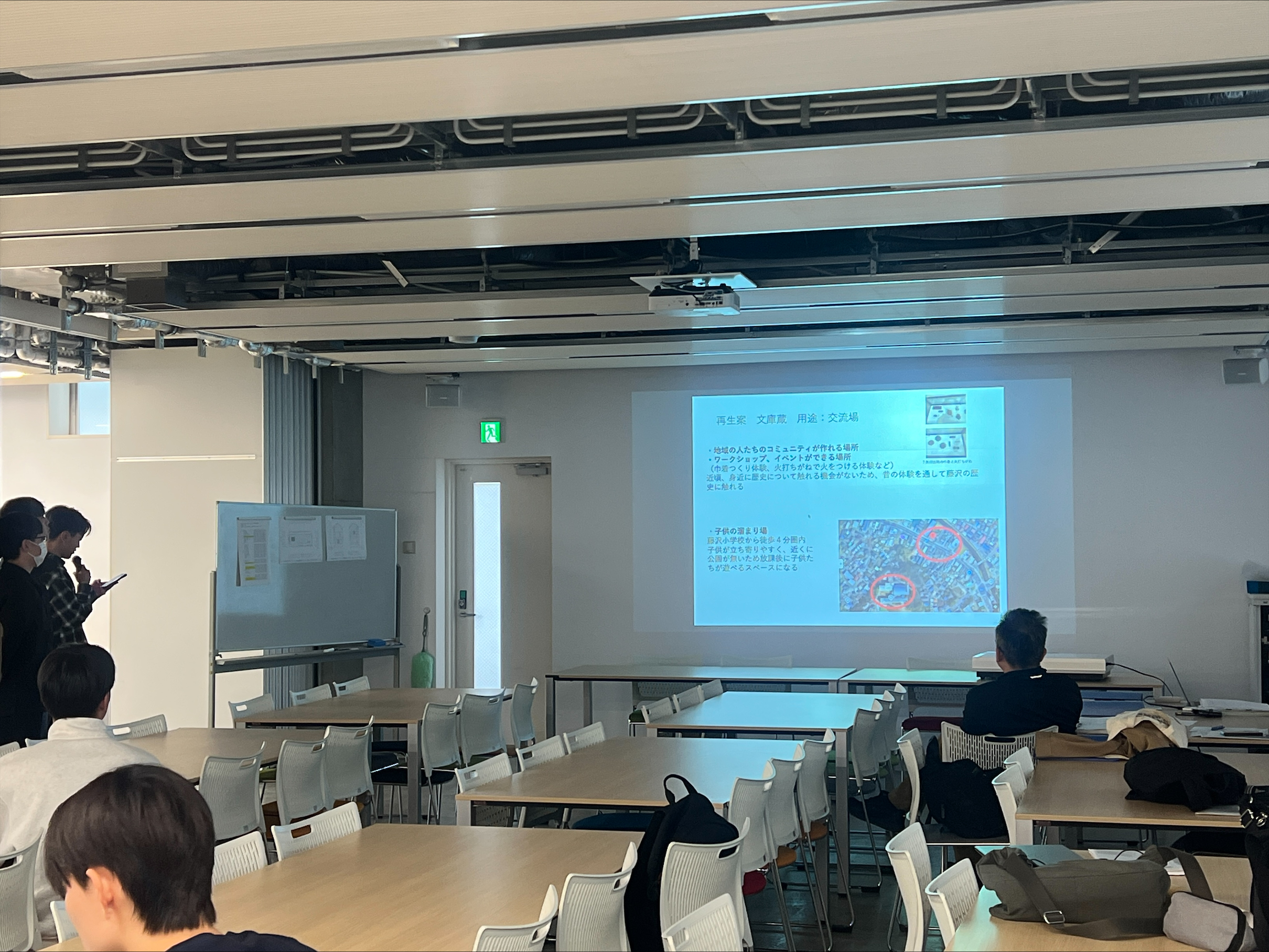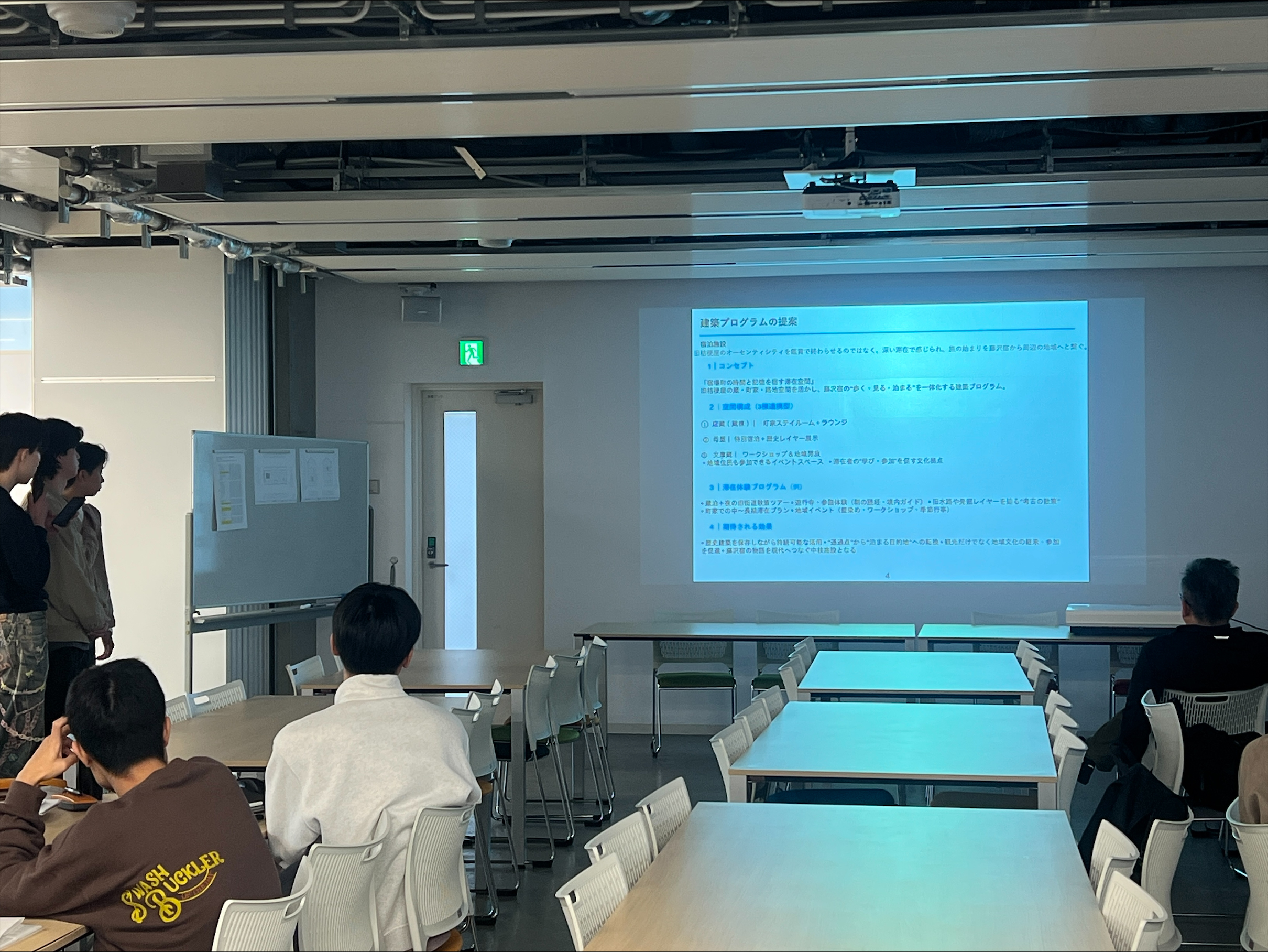 2025年11月11日(火)、まちづくりデザインスタジオ2の第6回の授業が行われました。今回は班ごとに、敷地の特性と建築プログラムの発表を行いました。