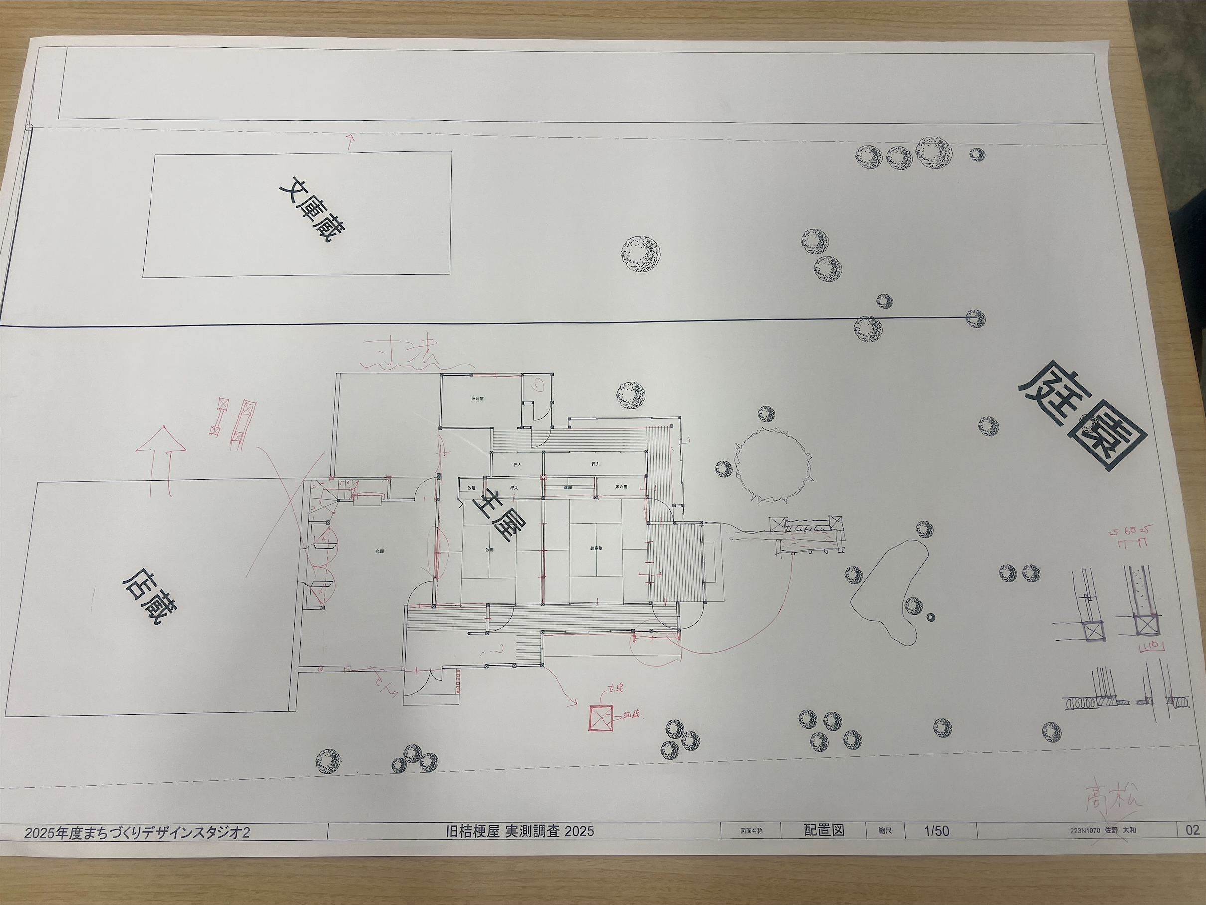黒田先生「桔梗屋の図面をレポート内に入れ、具体的な空間の活用方法を説明してほしい。後半の設計課題の為にも必要になる。」
