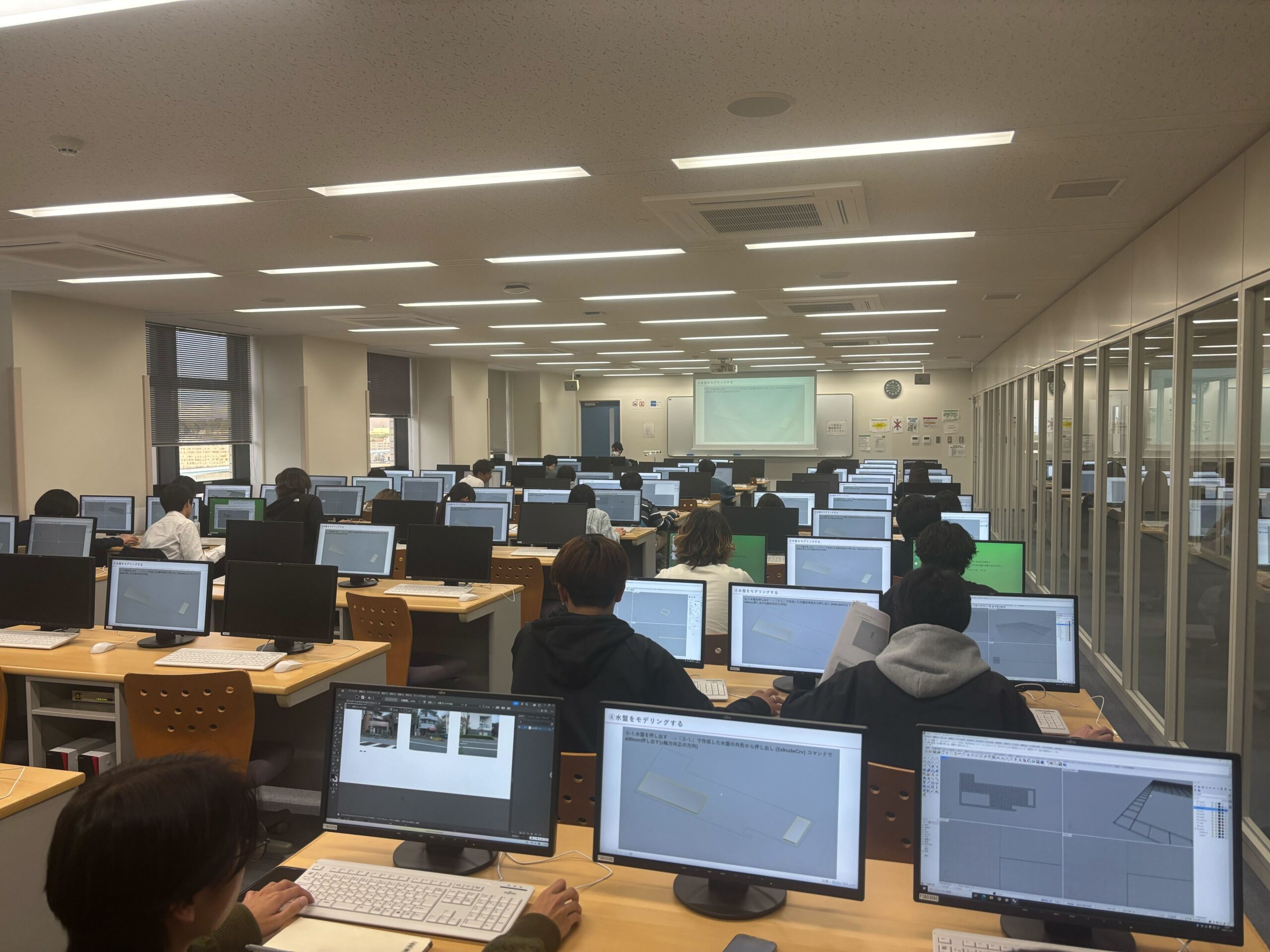 前回までの配布データに頼ることなく、自分で線を引き、形を積み上げていくプロセスを体験したことで、学生それぞれがモデリングへの理解を一段と深められた授業となった印象です。