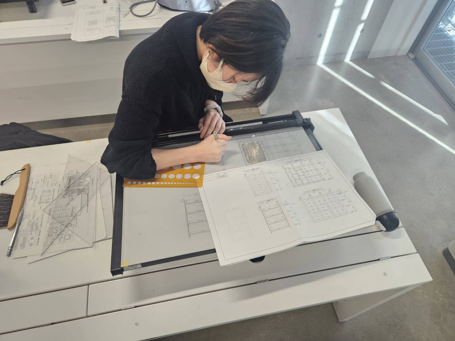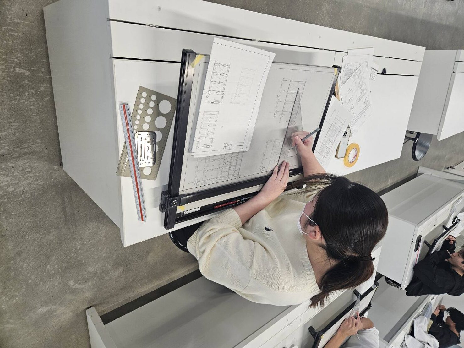 しかし、第1回~第6回の授業でRC造図面の作図に関して多くの学生の理解が深まったため、多くの学生が集中して作図し、次々と図面を完成させていました。
