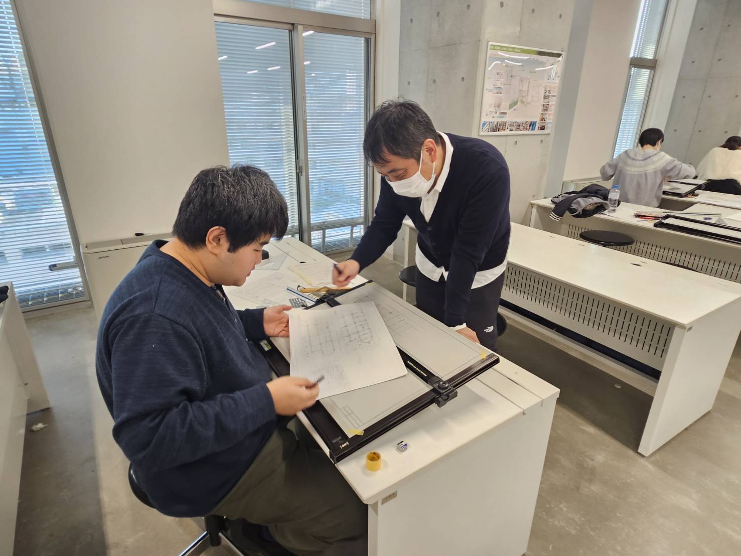 12月1日に行われた建築構造設計製図の第8回目の授業では、鉄骨造(S造)の基礎伏図及び1階床伏図に取り組みました。