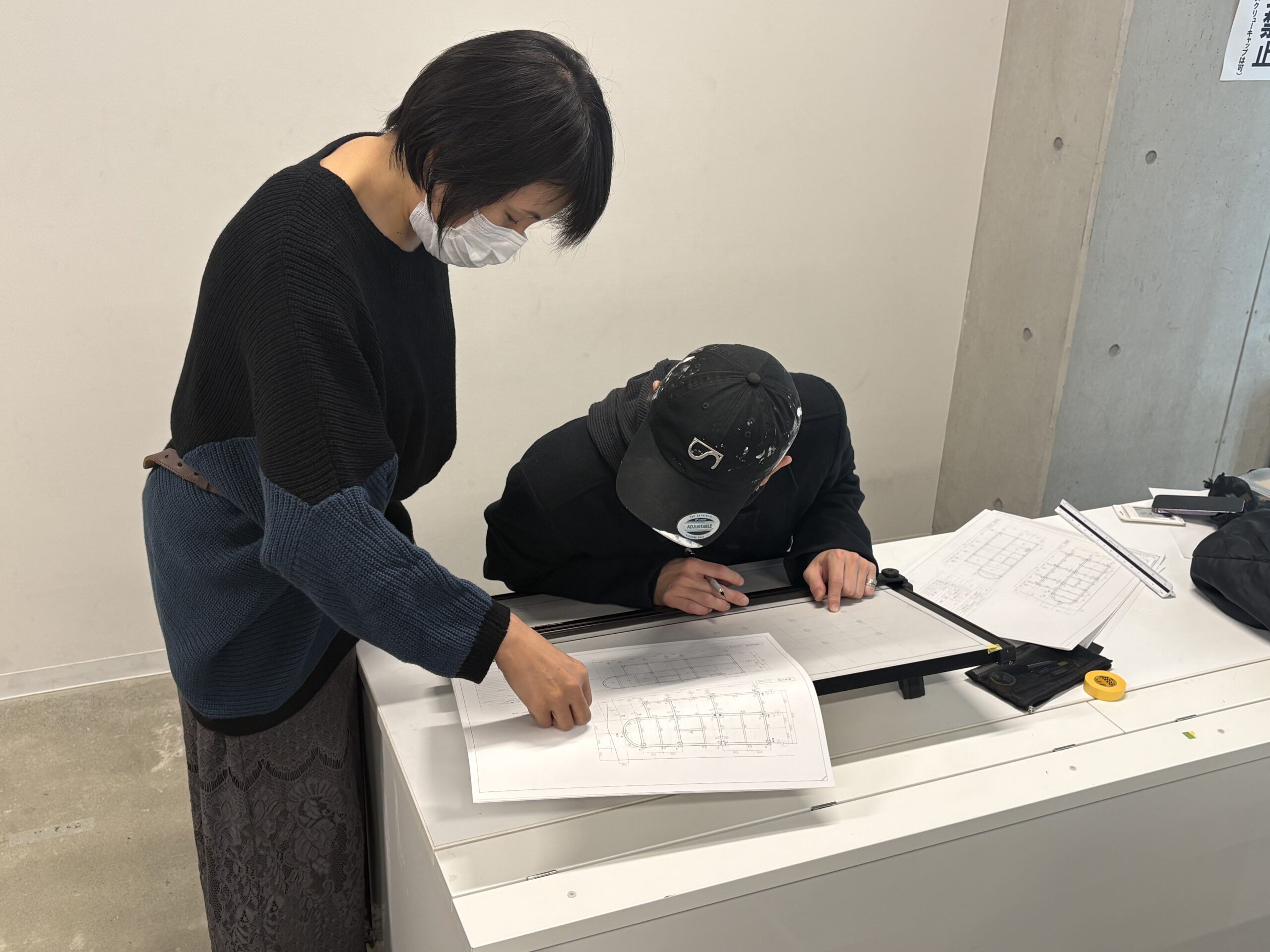 鉄骨構造の作図が初めての学生が多く、梁リストや意匠図を行ったり来たりし、悩みながら作業を進めているようでした。
