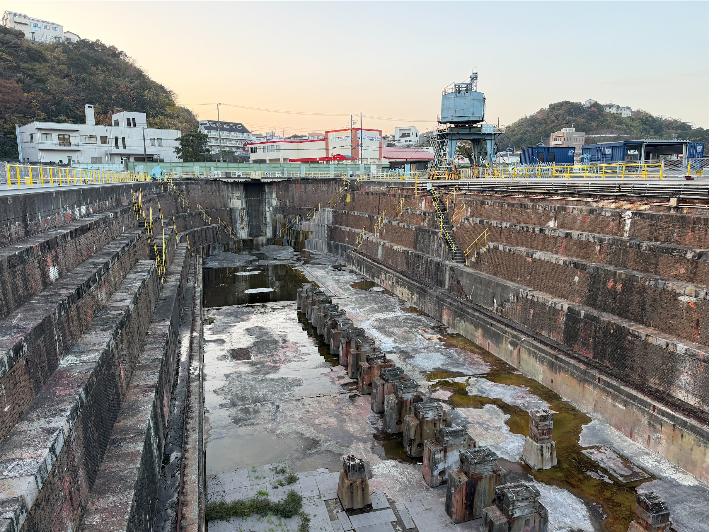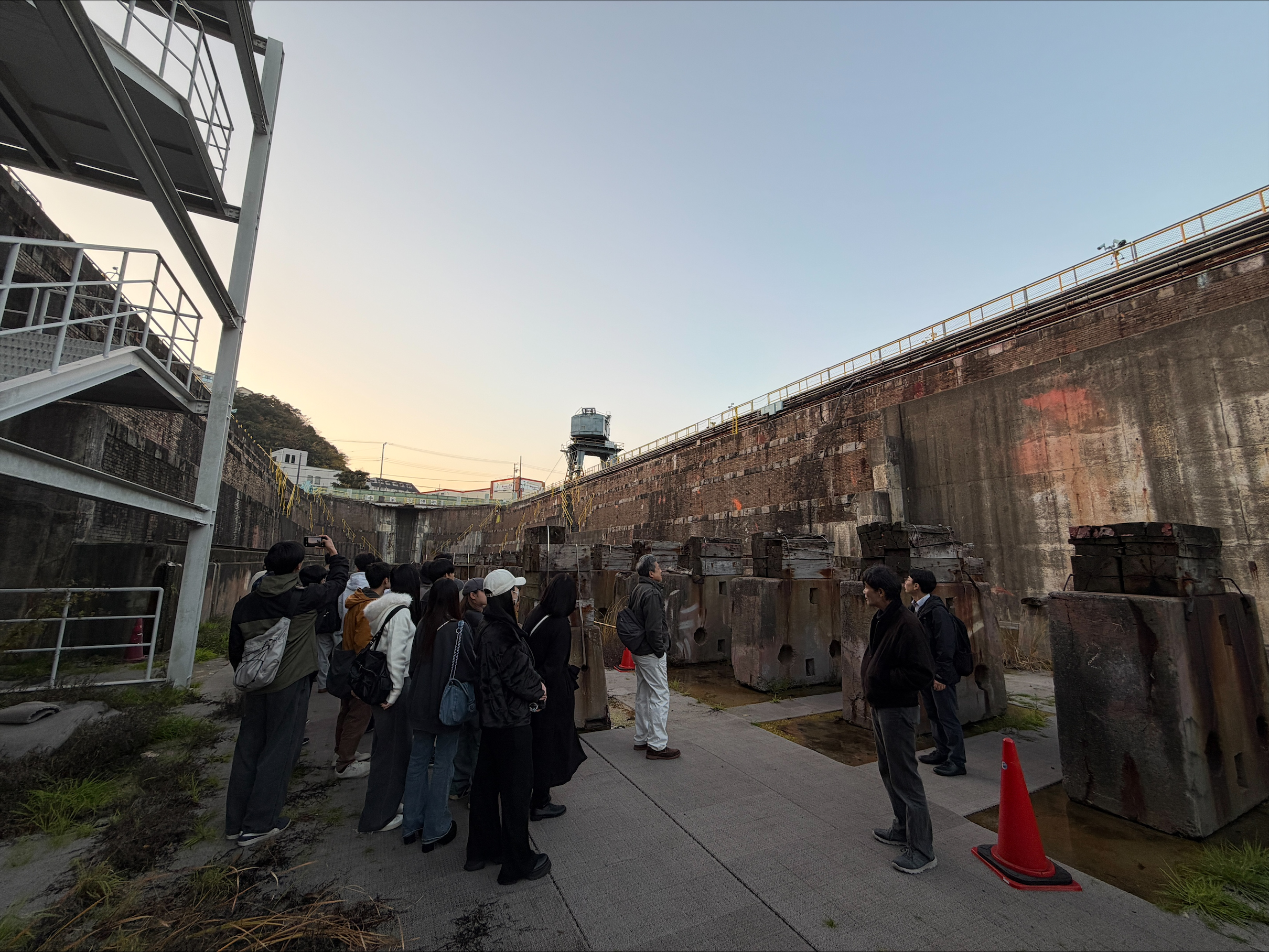 最後に、明治時代につくられた浦賀ドックを見学しました。ドックとは船の修理用施設で、中に船が入った後にポンプで水を抜いて、船底などを修理します。レンガ造のドックは、国内ではここと、同じく浦賀湾に面した川間ドックの2件のみであり、大変貴重な歴史的建造物です。