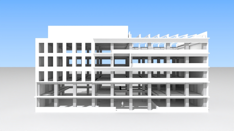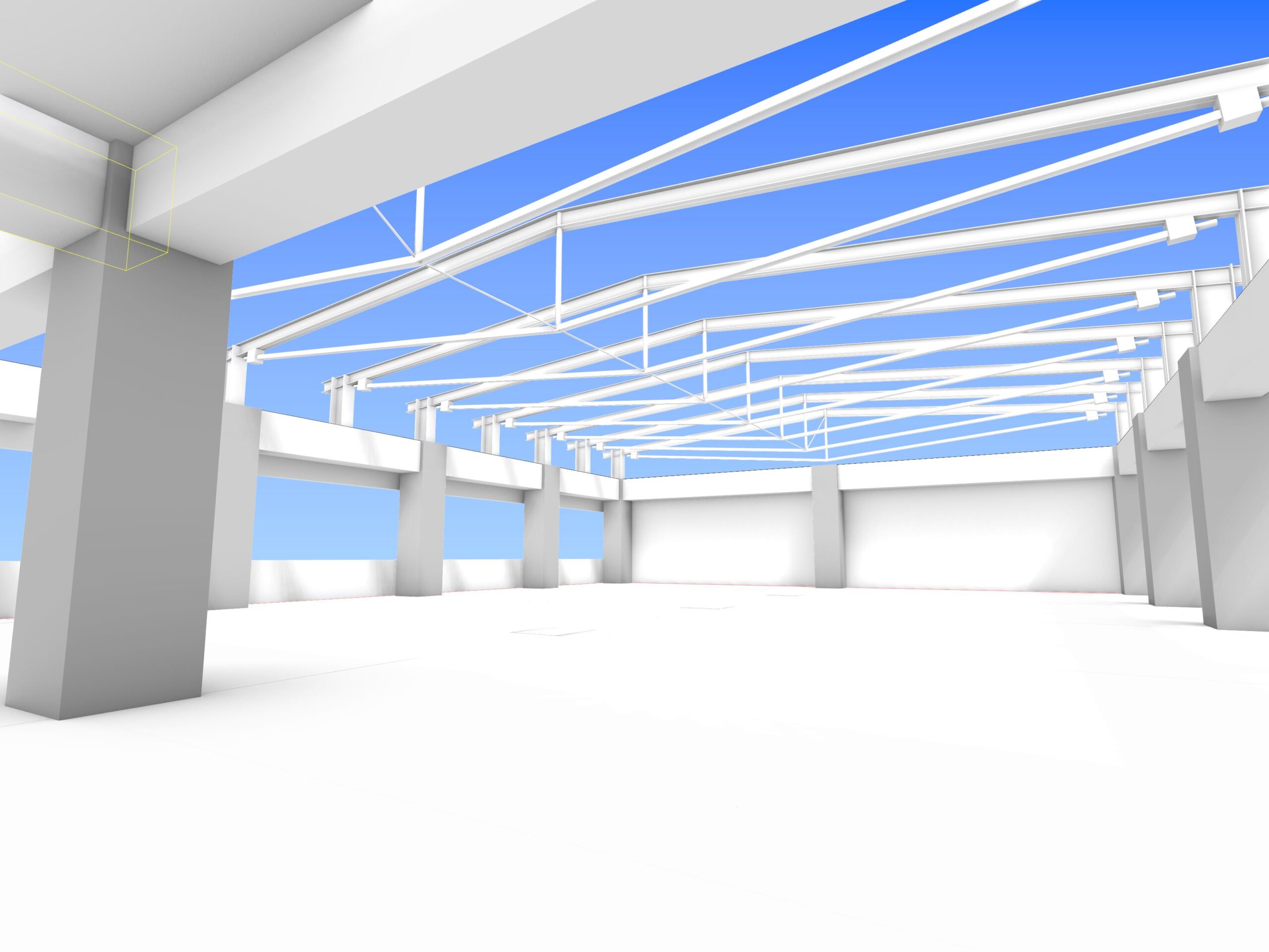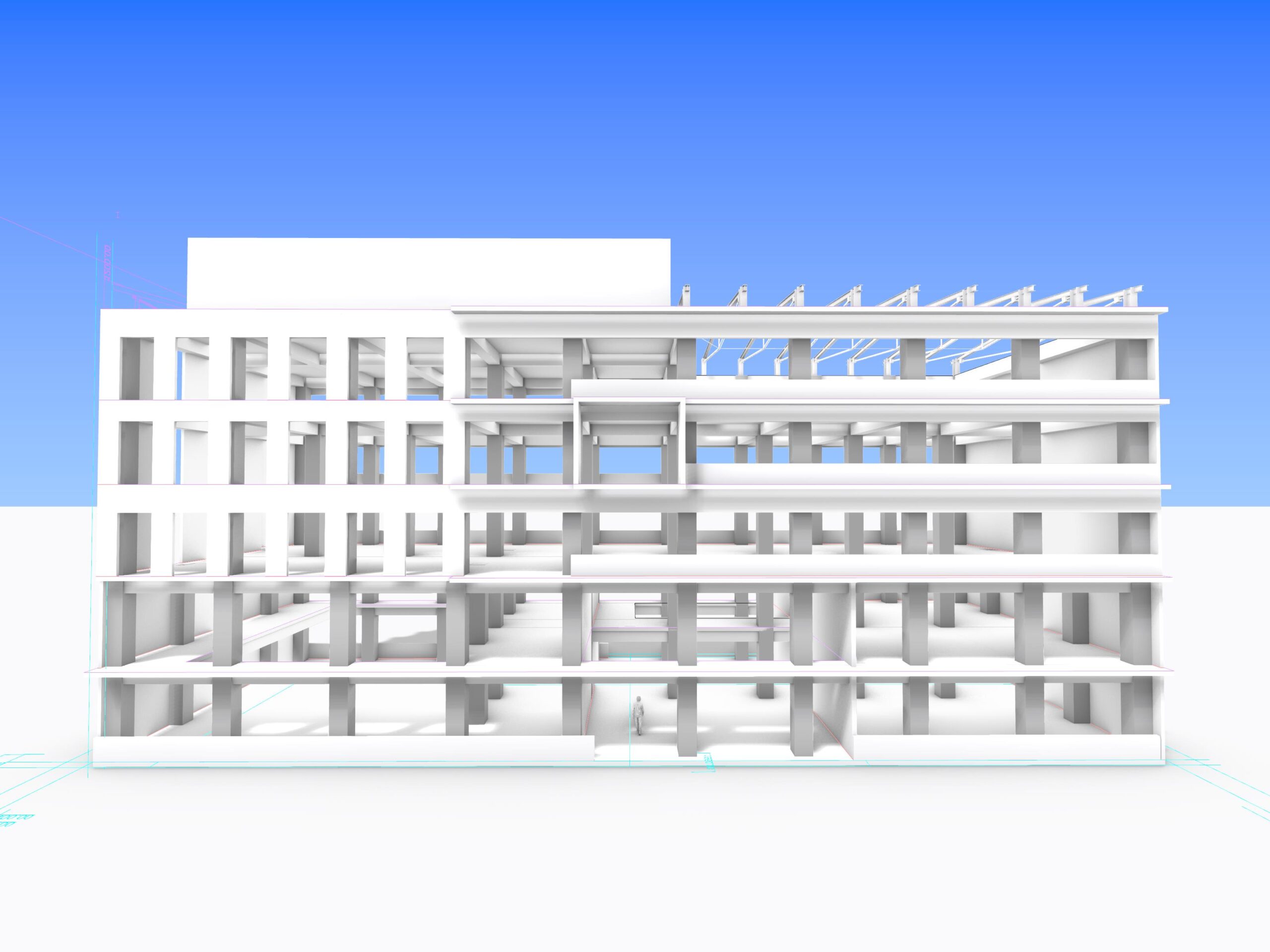 軸組図から柱のモデリング、梁伏図から梁のモデリングを行い、5号館の構造を考えながら建物全体を3Dモデル上で再現することができました。