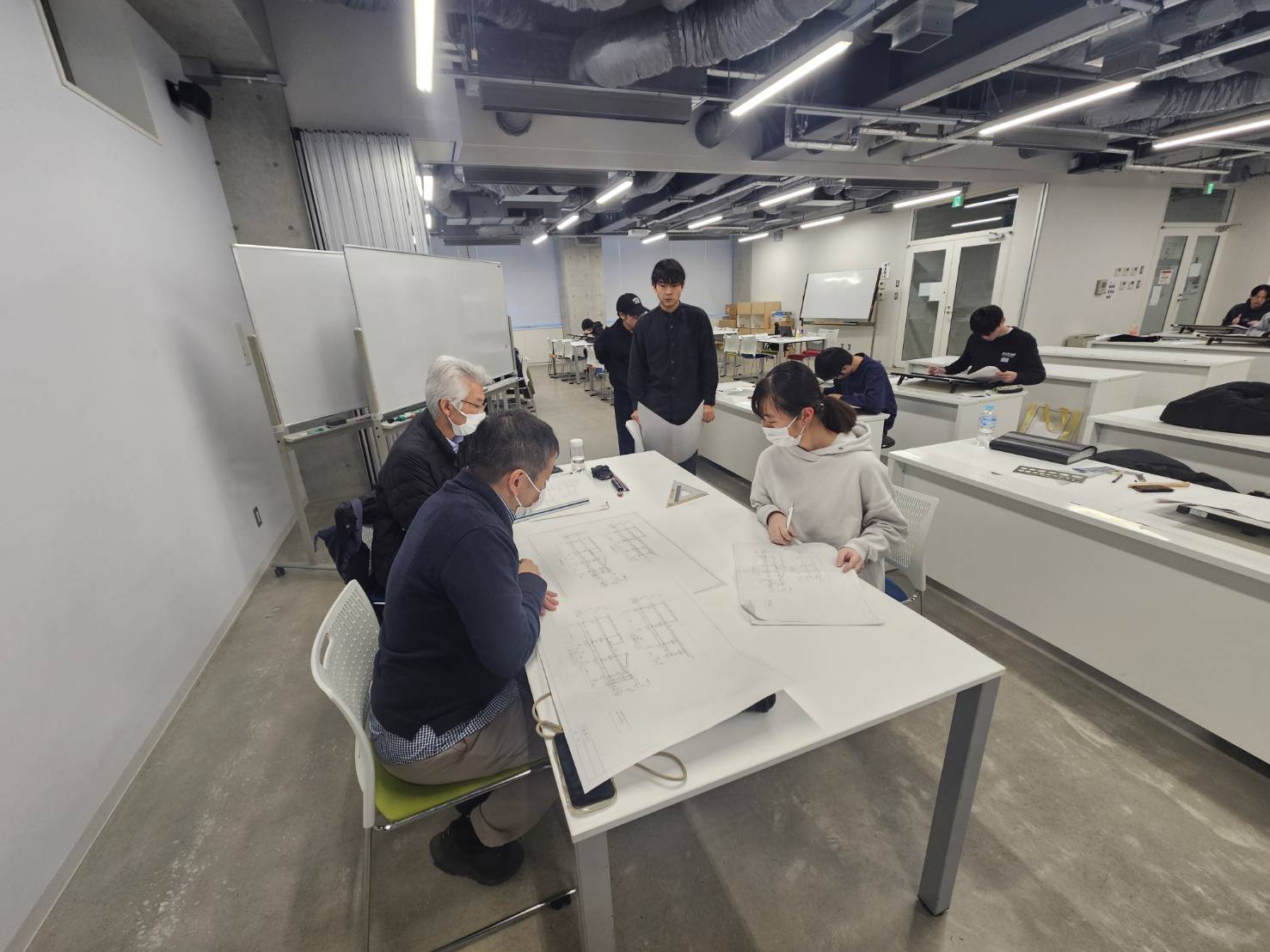鉄骨造の作図も3枚目となり、慣れてきたのか多くの学生が授業内に作図を終えることが出来ました。