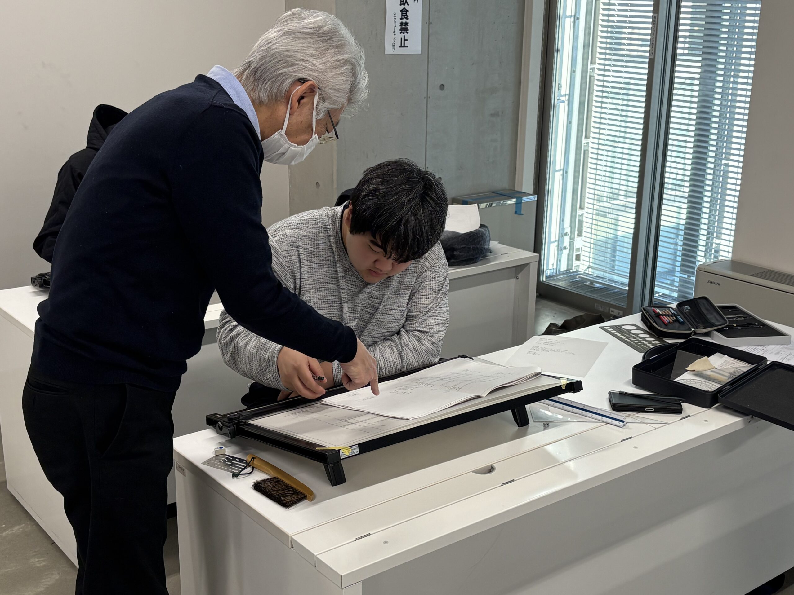 作図前の説明時に作図方法だけでなく、多くの学生がミスしやすい箇所を含めて説明がありました。