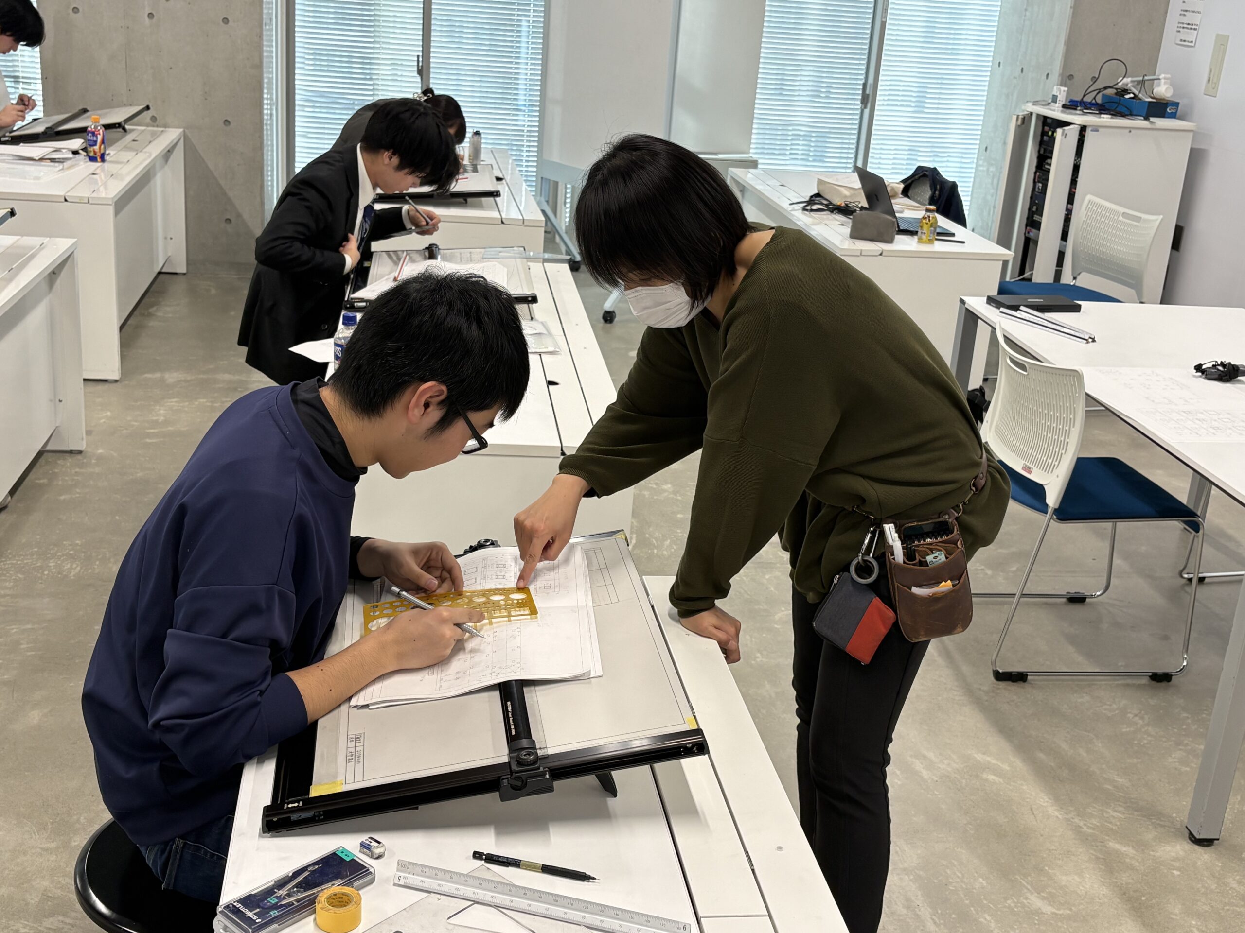 2025年12月22日 第11回建築構造設計製図の授業が行われました。