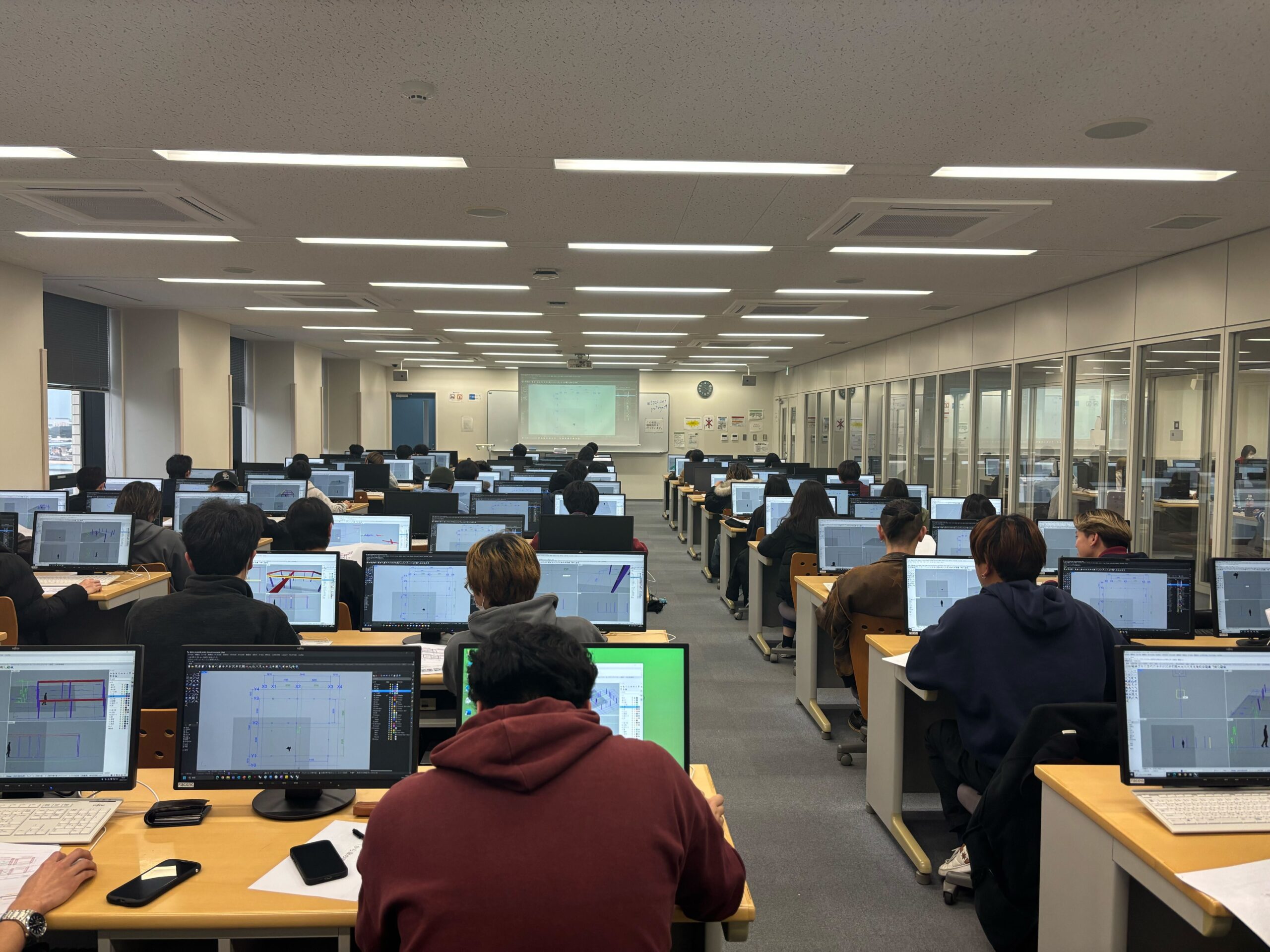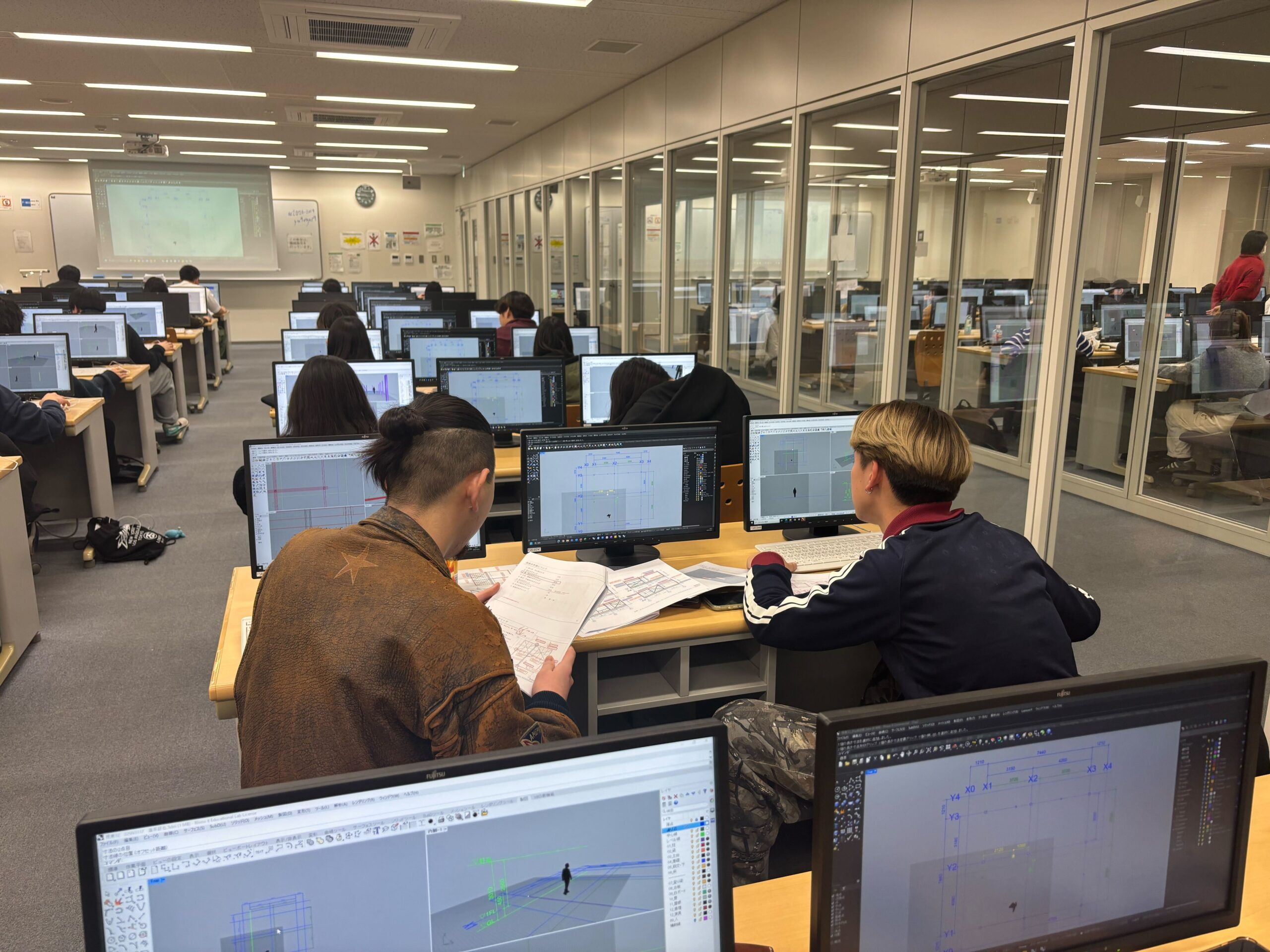 今回は、軸組のモデリングを中心に作業を進めました。図面の読み取りに苦労しながら、断面や構成を一つ一つ確認し、3Dモデルを立ち上げようとする学生の姿が見られました。