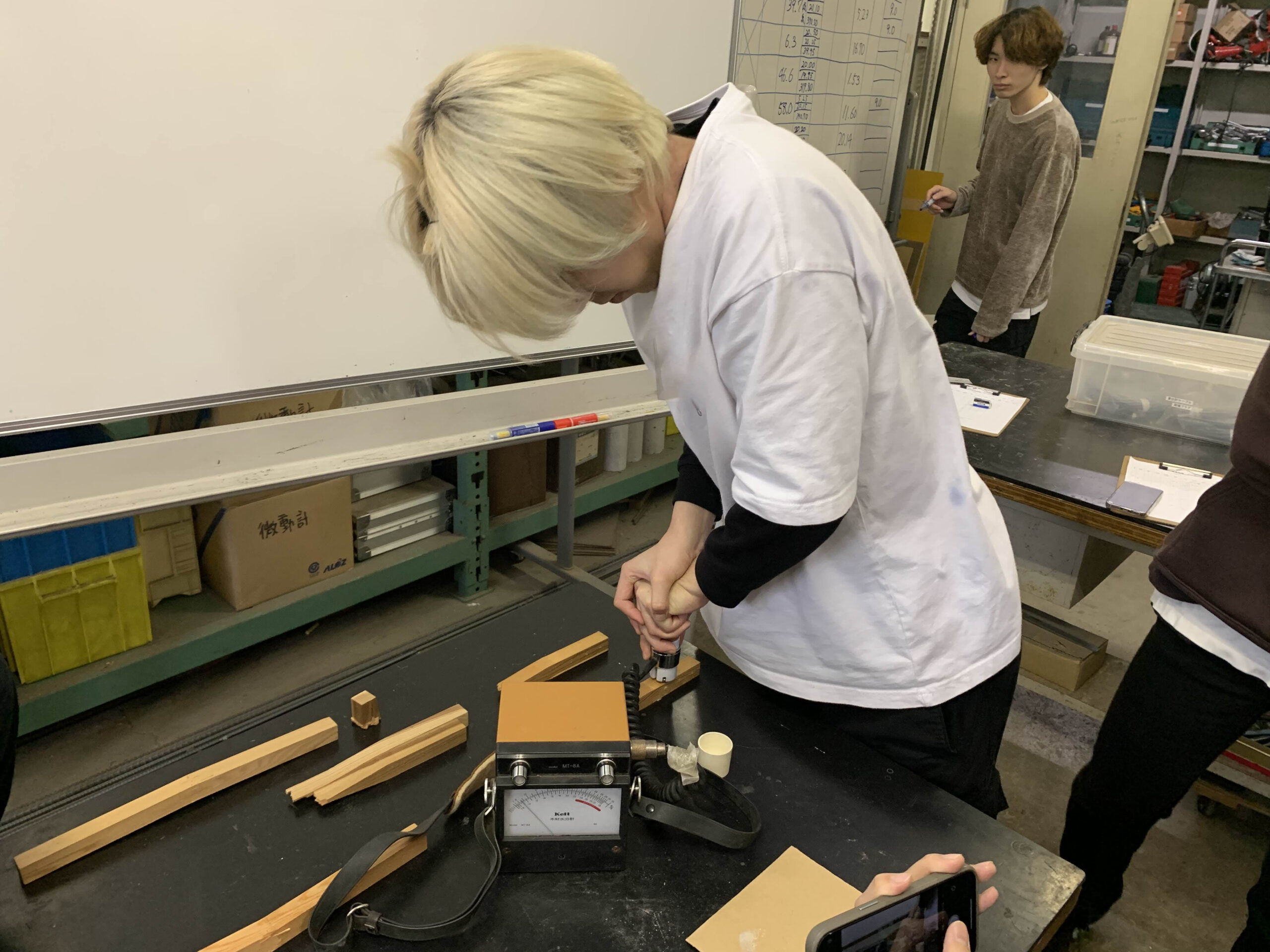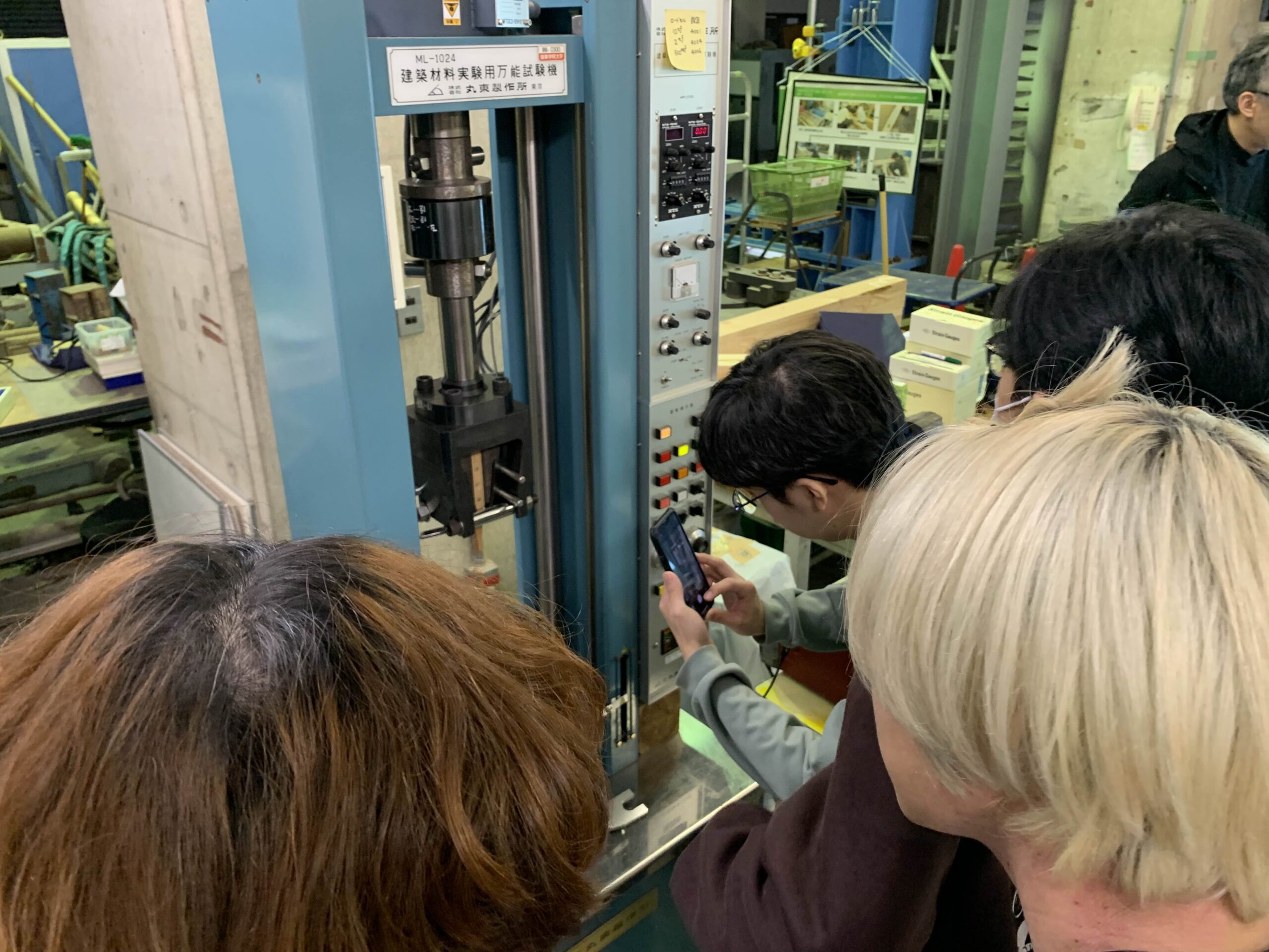 試験中は引っ張られているとき、潰されるとき、曲げられるときの木材が変形していく様子や発生する音について観察しました。
