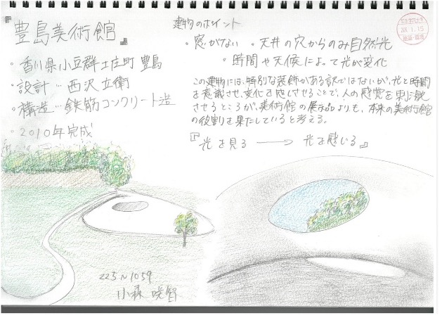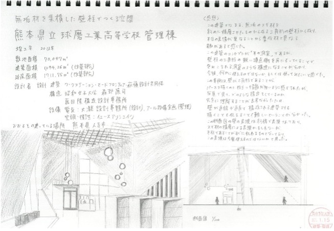 スケッチ課題は計4回行われました。どの学生も1回目の時からかなり成長した様子が見られ、レイアウトや表現が上達したと思います。また、学生同士のコミュニケーションもより活発になったように思います。