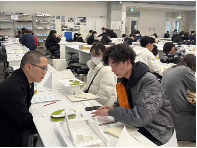 2026年1月15日(木)に建築設計製図Ⅱの第13回目の授業が行われました。今回は第2課題、最後のエスキスです。中間発表での指摘を踏まえて、最後のブラッシュアップの機会になります。