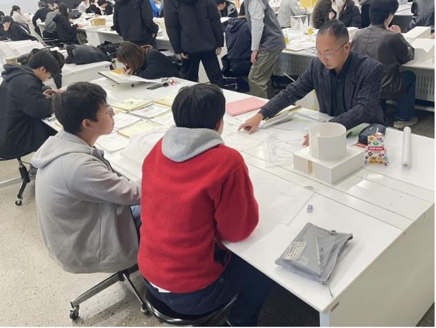 自分のやりたいことを伝えられるようになってきた学生も増え、先生や友達に「こうしたい」という思いを、熱意を持って伝えていました。また、改めて図面の書き方を確認し、中間提出に向けて準備を進めていきましょう。