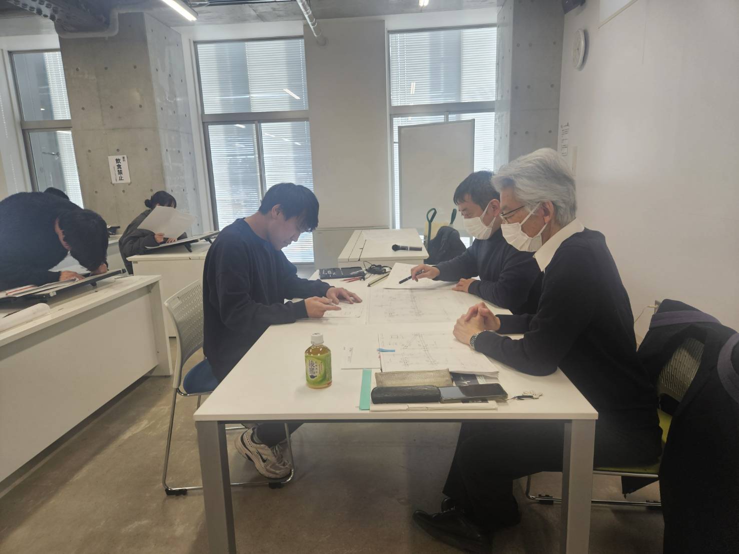 授業最終回ということもあり、どの学生も集中して作図していました。