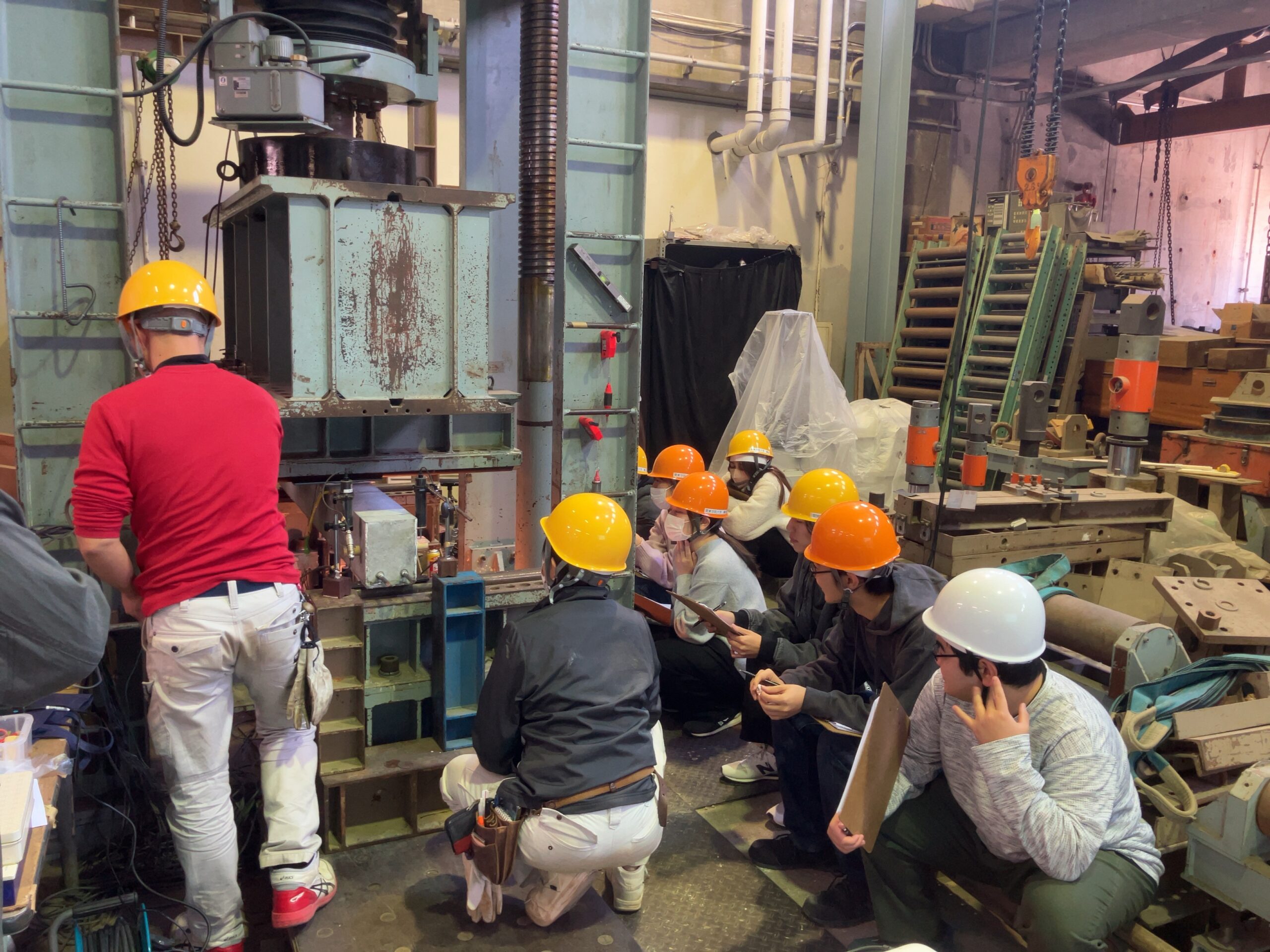 次にモデルの地面となる部分を振動させる強制振動を行いました。1~20Hzの間で1Hz刻みで一定時間振動させる実験、1~20Hzの間で連続的に振動数が変わる実験、実際の地震のデータであるエルセントロ観測波(NS成分50%)を用いて振動させる実験の3種類です。これらの強制振動実験により、対象のモデルがどのような地震動により最も揺れやすいかがわかりました。強制振動後にアルミフレームの寸法、質量を計測しました。