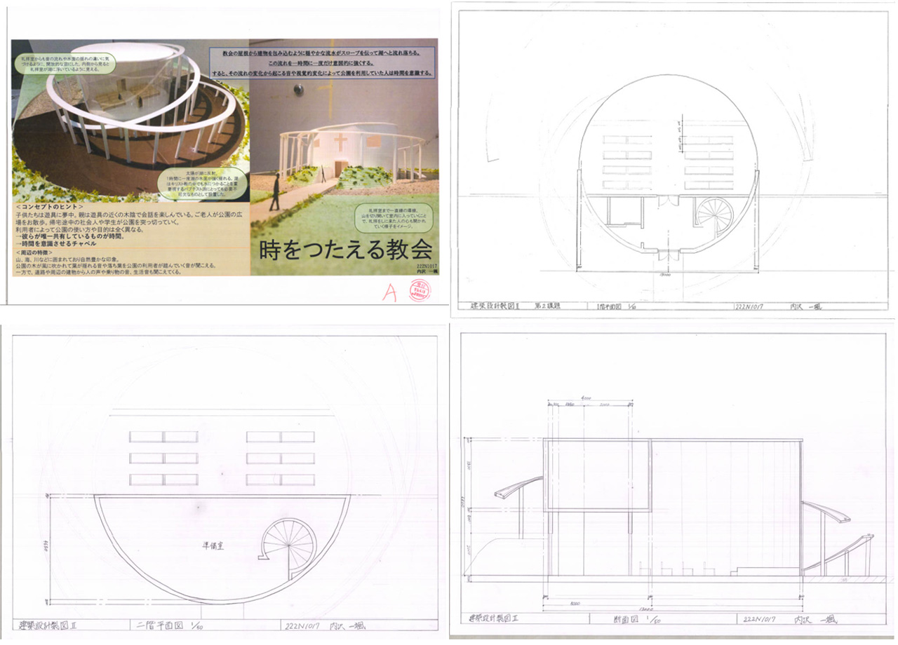 聖書に出てくる言葉をヒントに設計したり、独自にキリスト教について下調べをしている学生を何人か見受けられました。どのように建築として表現するべきか、具体的な設計になってくると、わからないことがどんどん増えてくると思います。友達同士で話し合ったり、S Aに相談したり、その場で模型を作ってみたり、ぜひエスキスの合間の時間を有効活用しましょう。