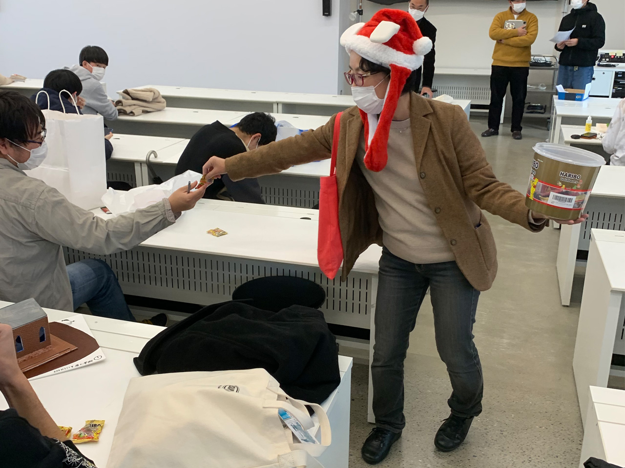 採点終了後、まずは班ごとに分かれて講評会が行われました。限られた時間の中、複数の作品が取り上げられて、作者によるプレゼンテーションと共に、それぞれ評価された点、今後気を付けたい点などが話し合われました。